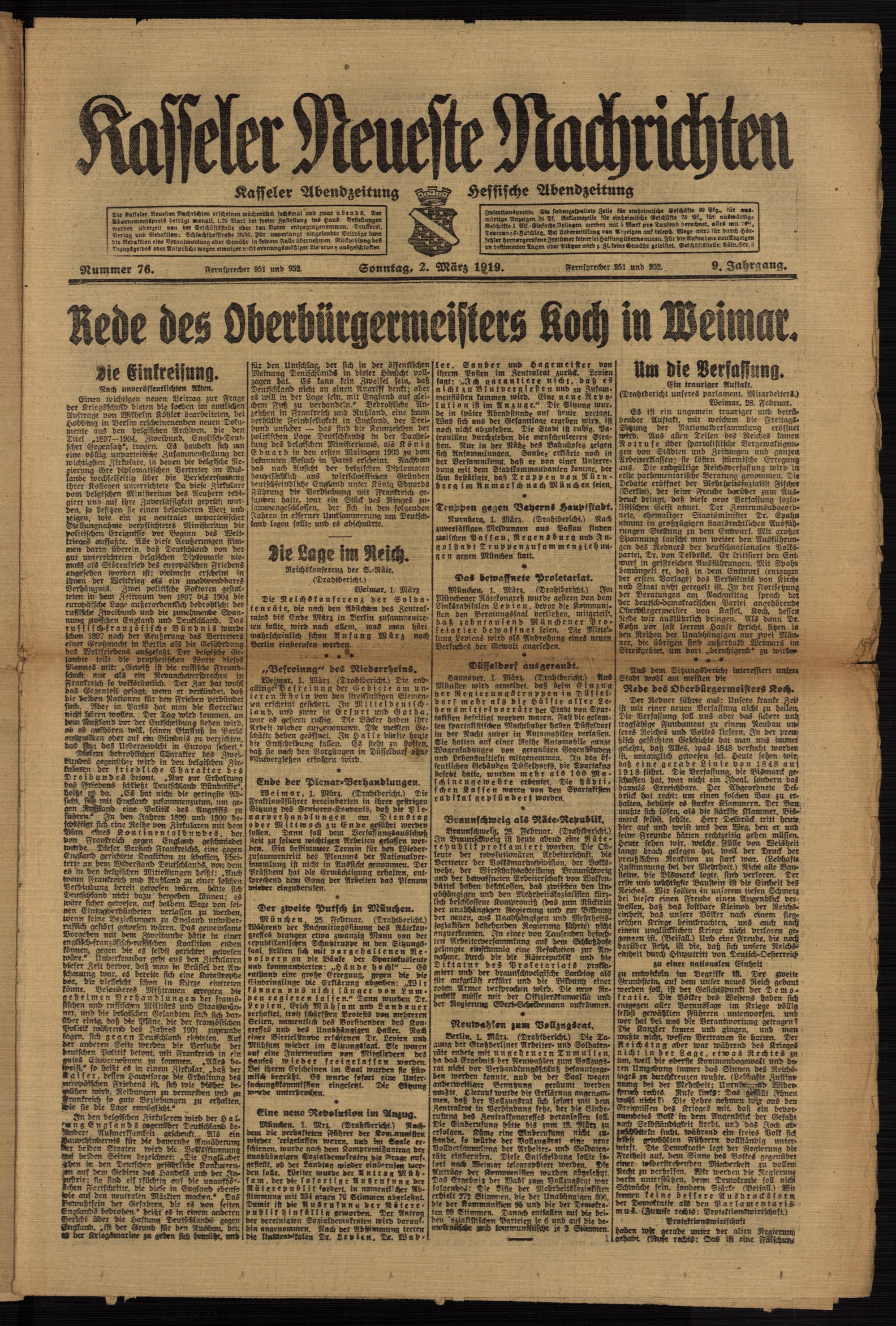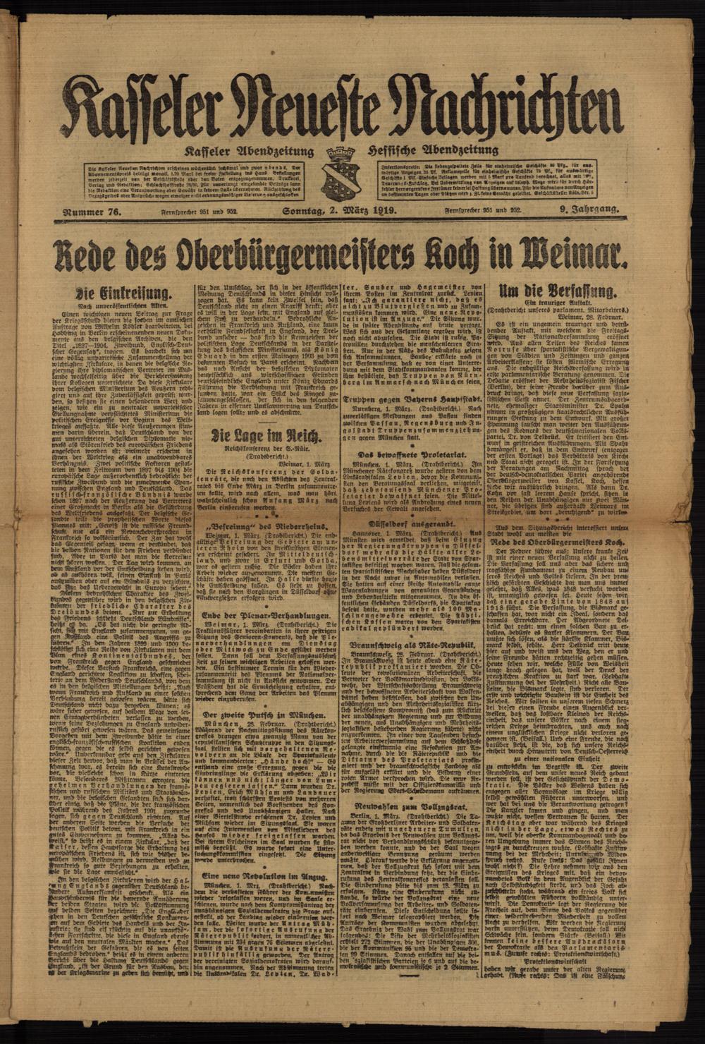 Casseler neueste Nachrichten. 1914-1918