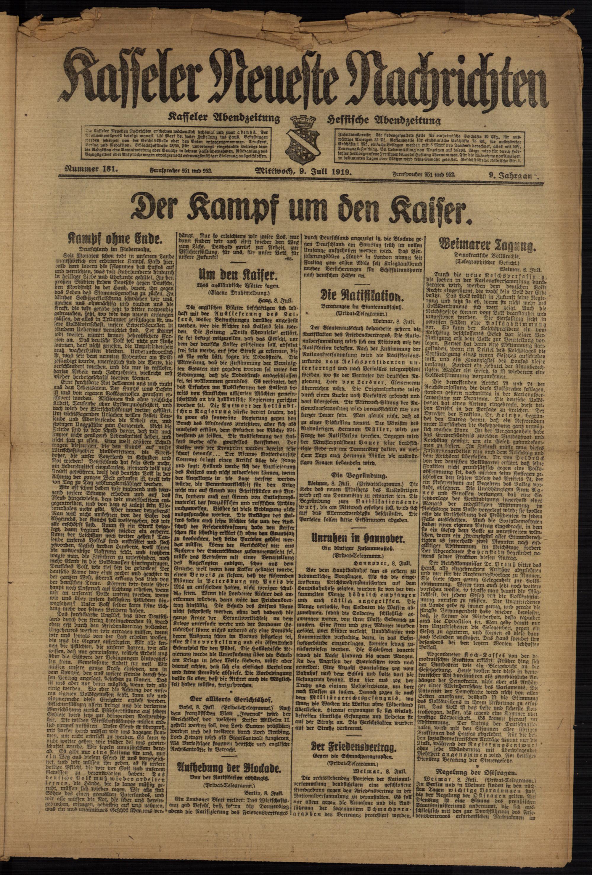 Casseler neueste Nachrichten. 1914-1918