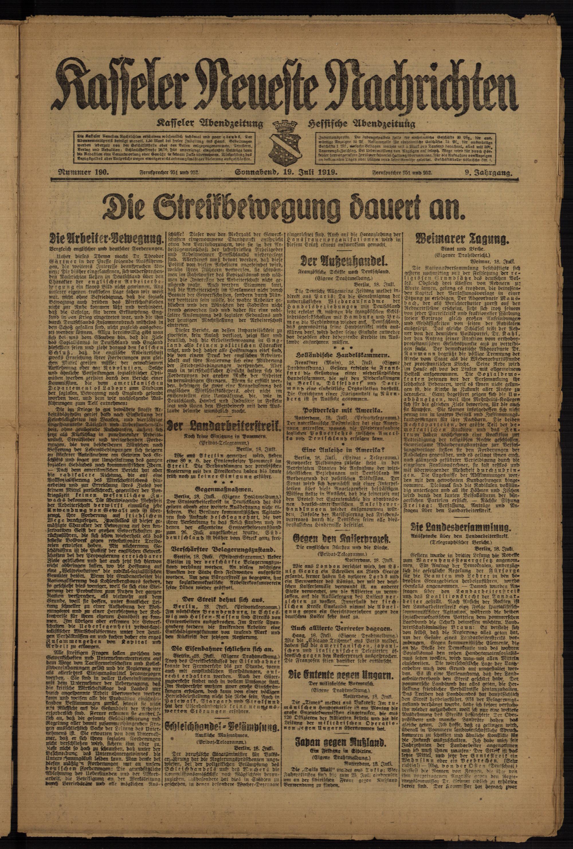 Casseler neueste Nachrichten. 1914-1918