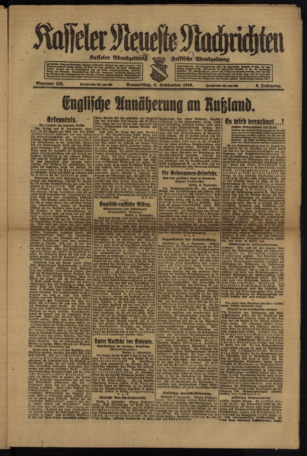 Casseler neueste Nachrichten. 1914-1918