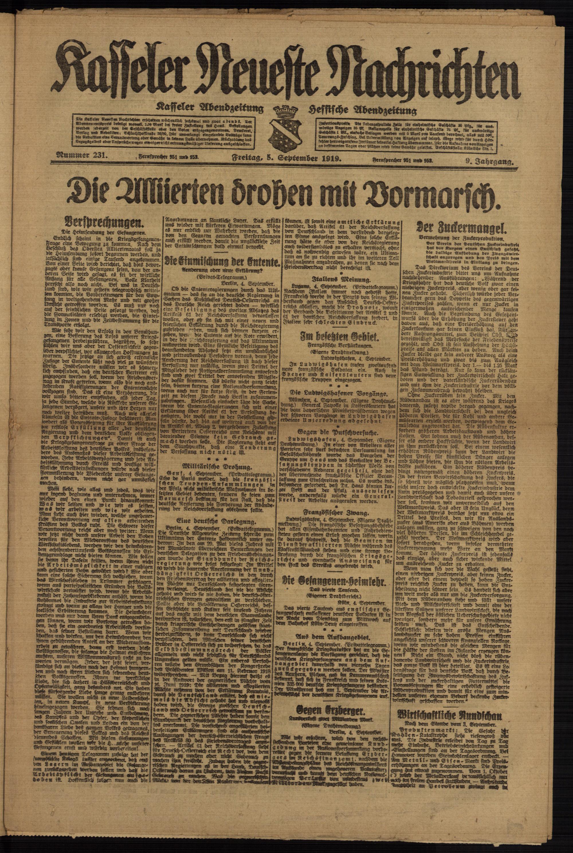 Casseler neueste Nachrichten. 1914-1918