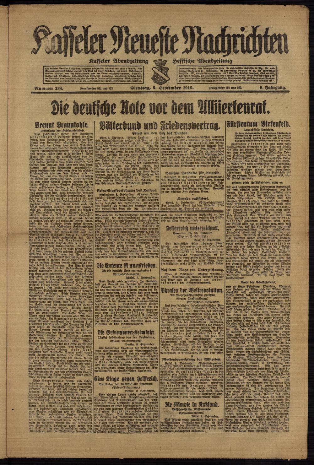 Casseler neueste Nachrichten. 1914-1918