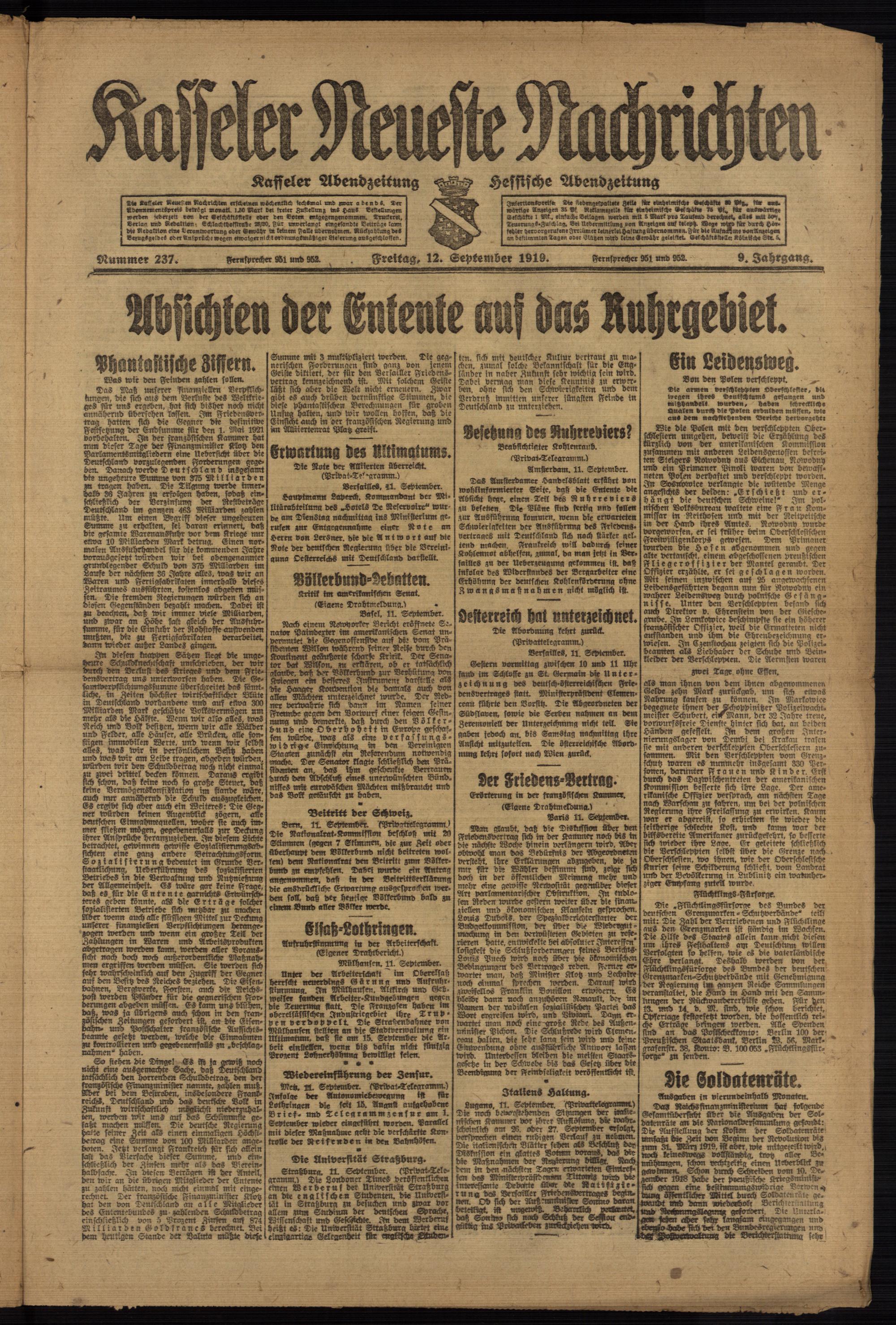 Casseler neueste Nachrichten. 1914-1918