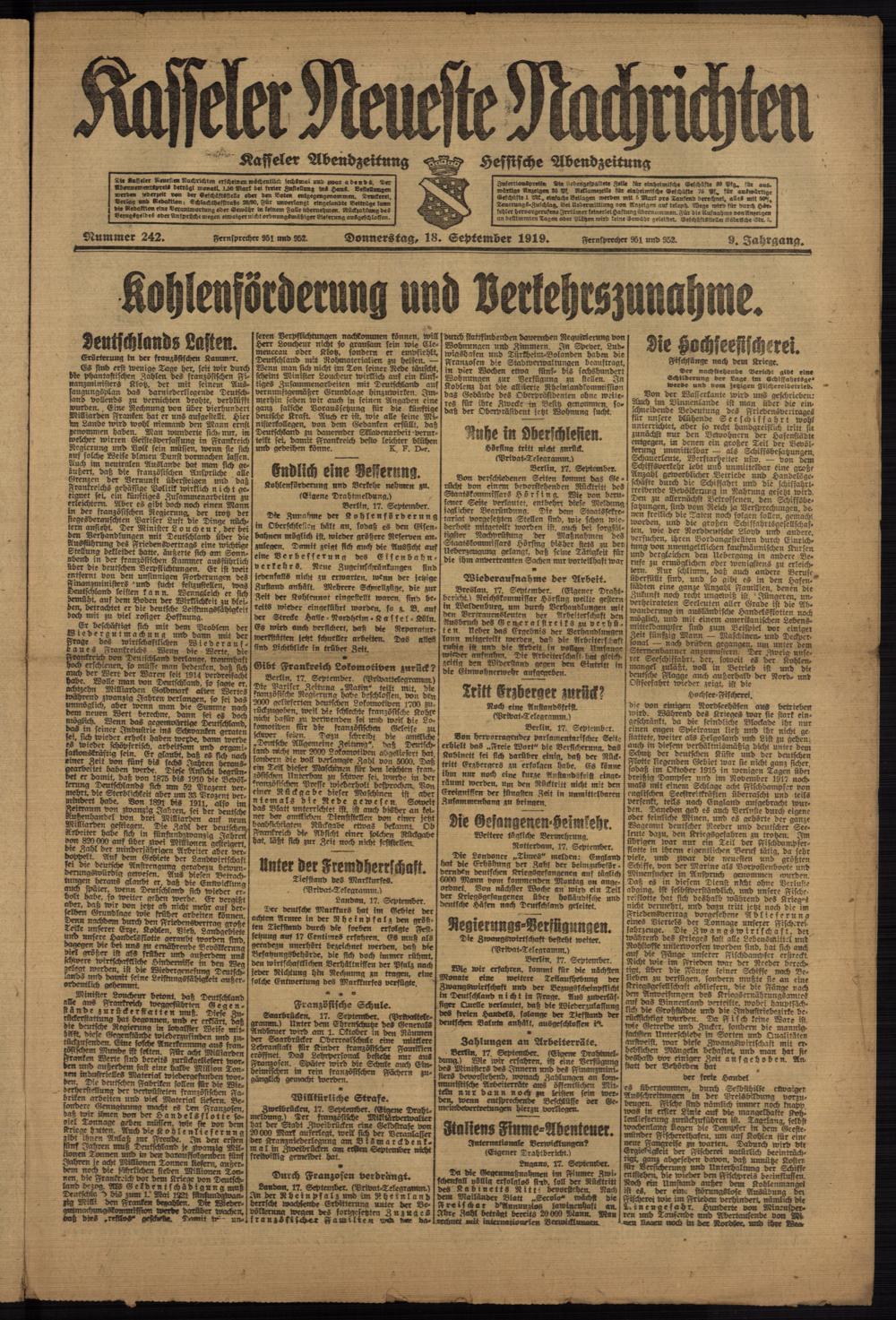 Casseler neueste Nachrichten. 1914-1918