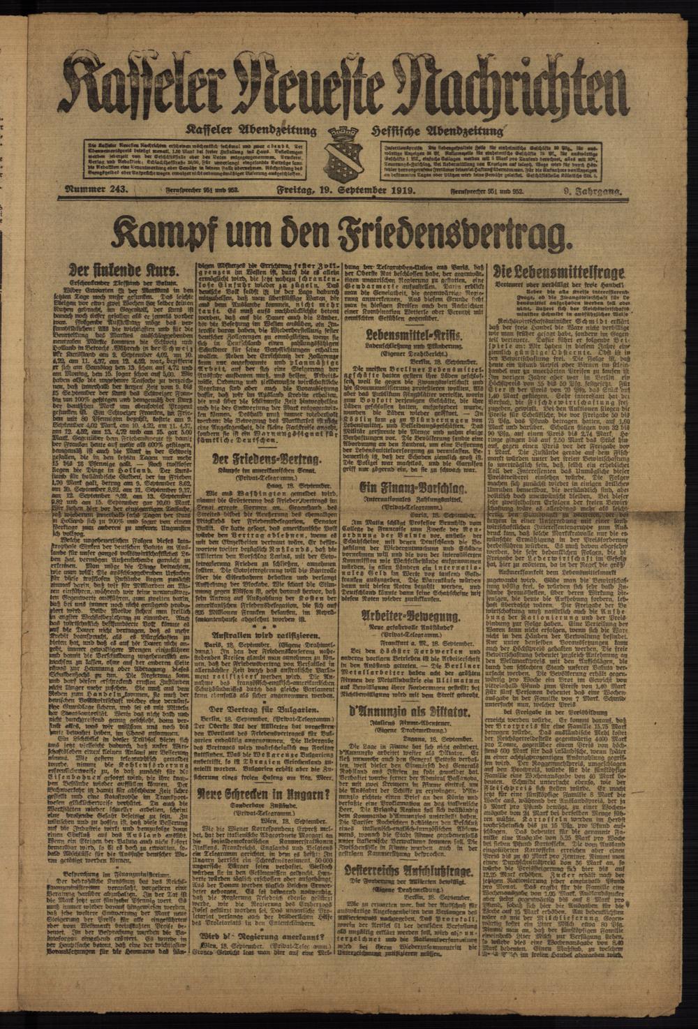 Casseler neueste Nachrichten. 1914-1918