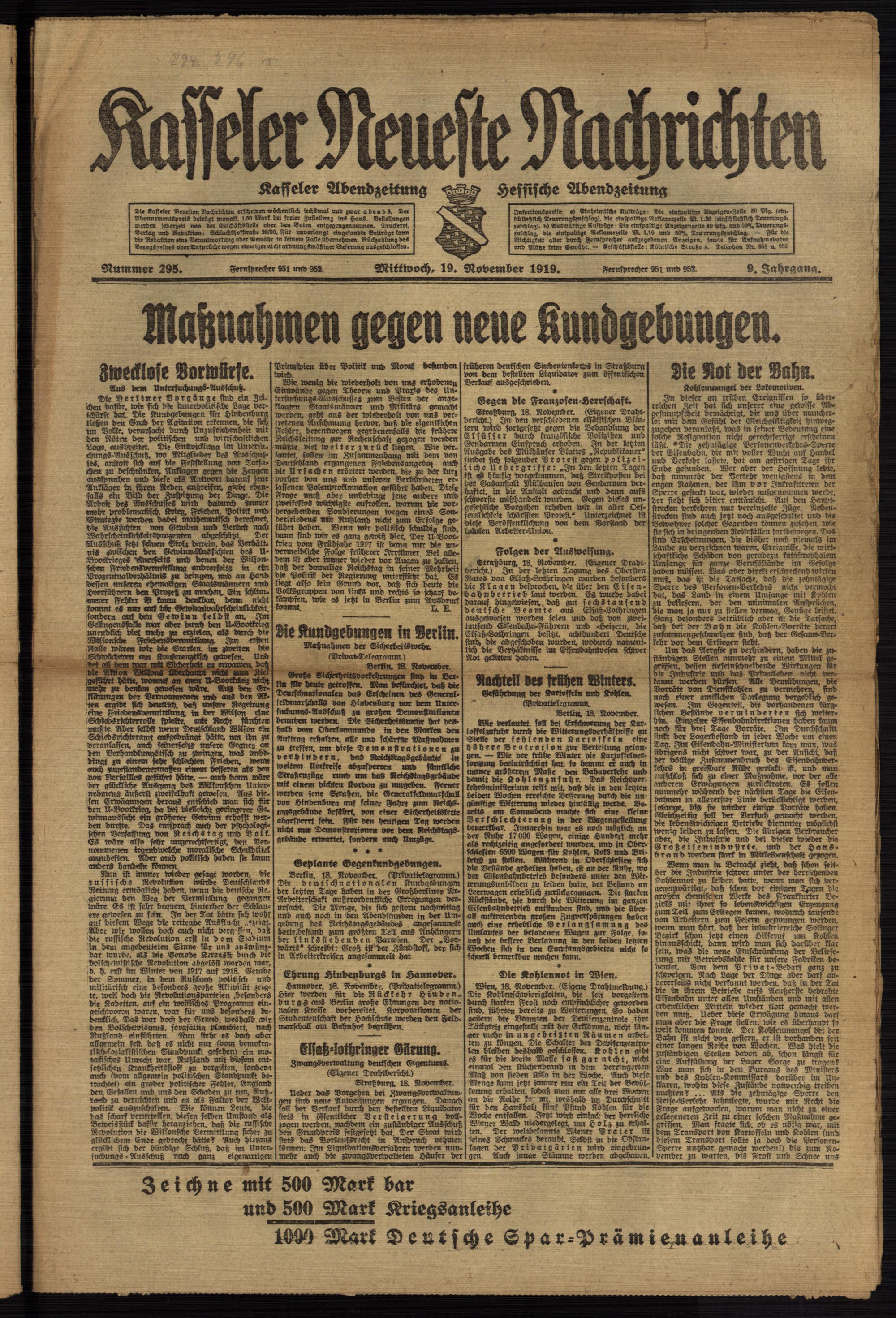Casseler neueste Nachrichten. 1914-1918
