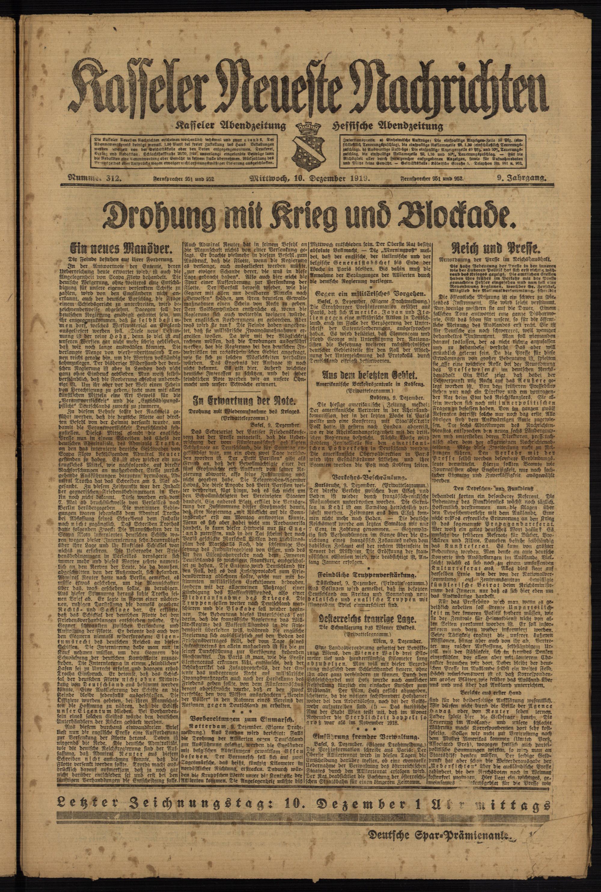 Casseler neueste Nachrichten. 1914-1918