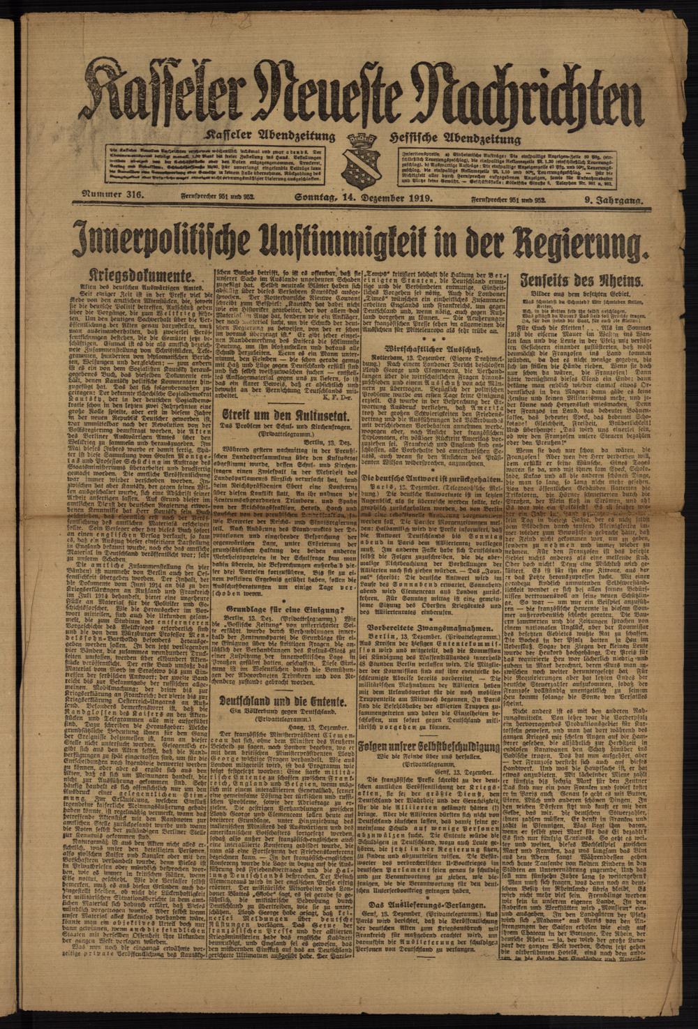 Casseler neueste Nachrichten. 1914-1918
