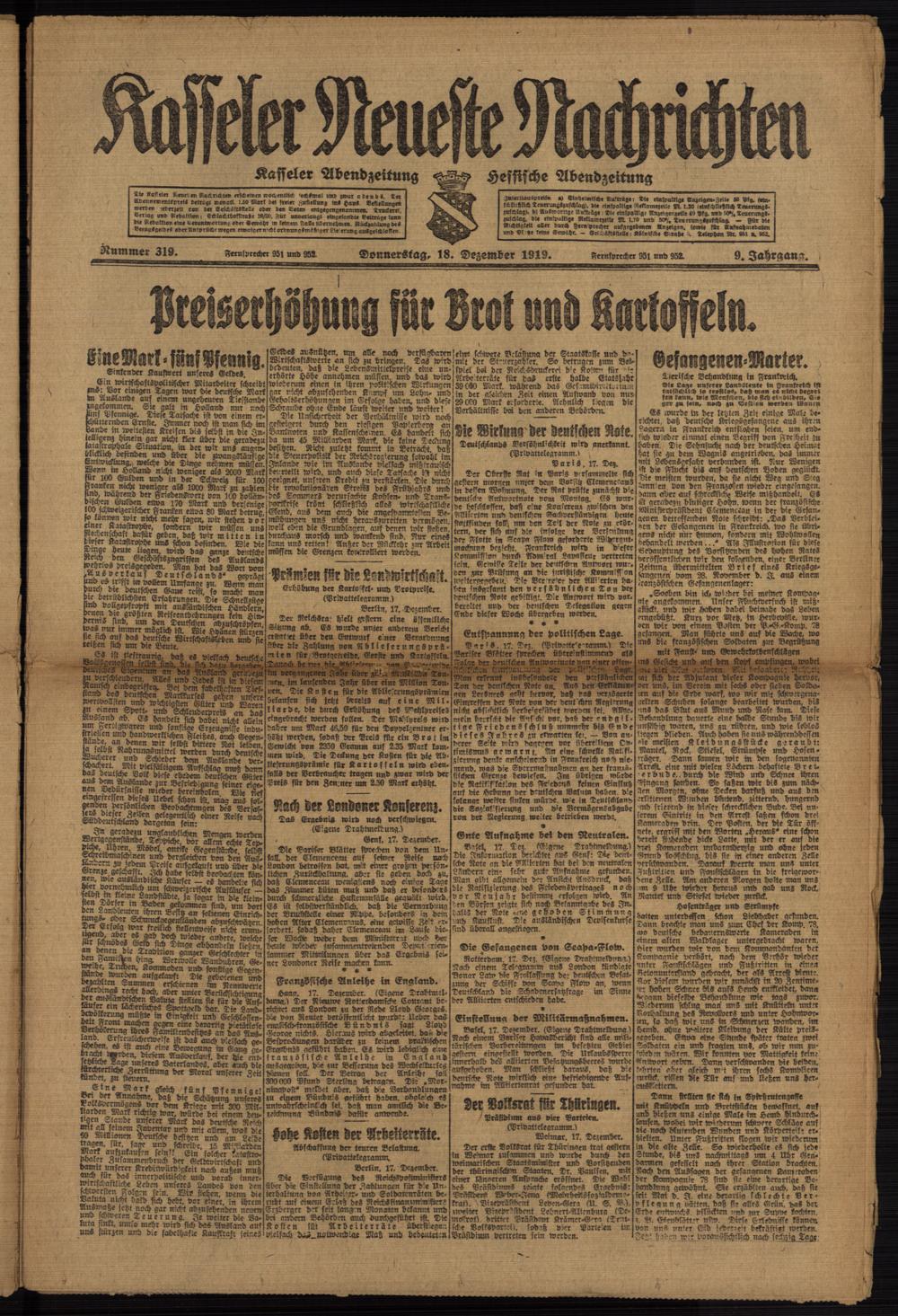 Casseler neueste Nachrichten. 1914-1918