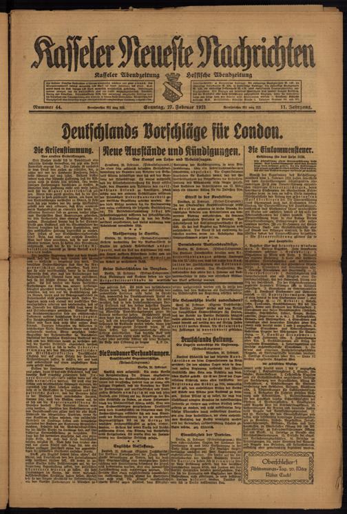 Casseler neueste Nachrichten. 1914-1918