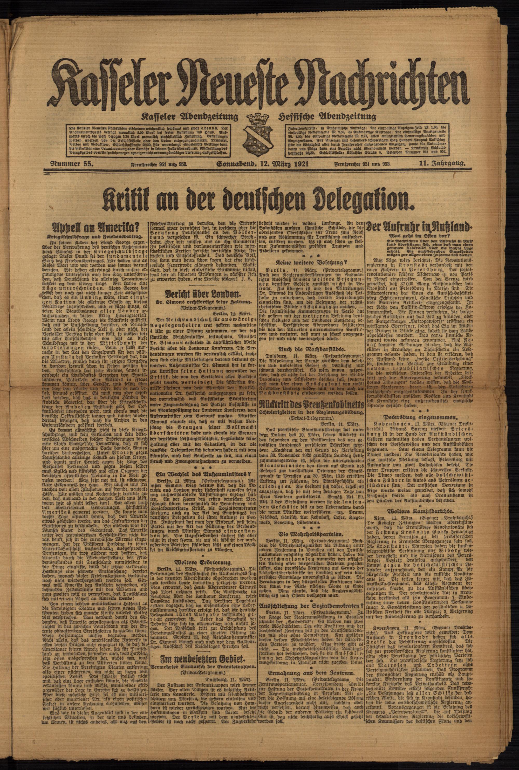 Casseler neueste Nachrichten. 1914-1918