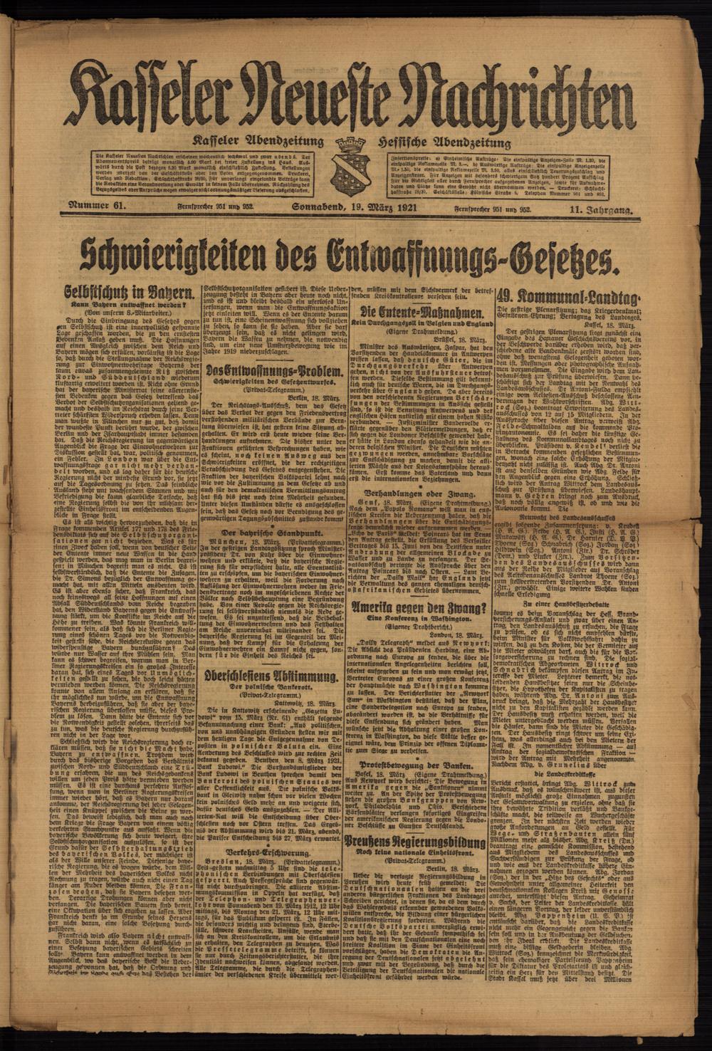 Casseler neueste Nachrichten. 1914-1918