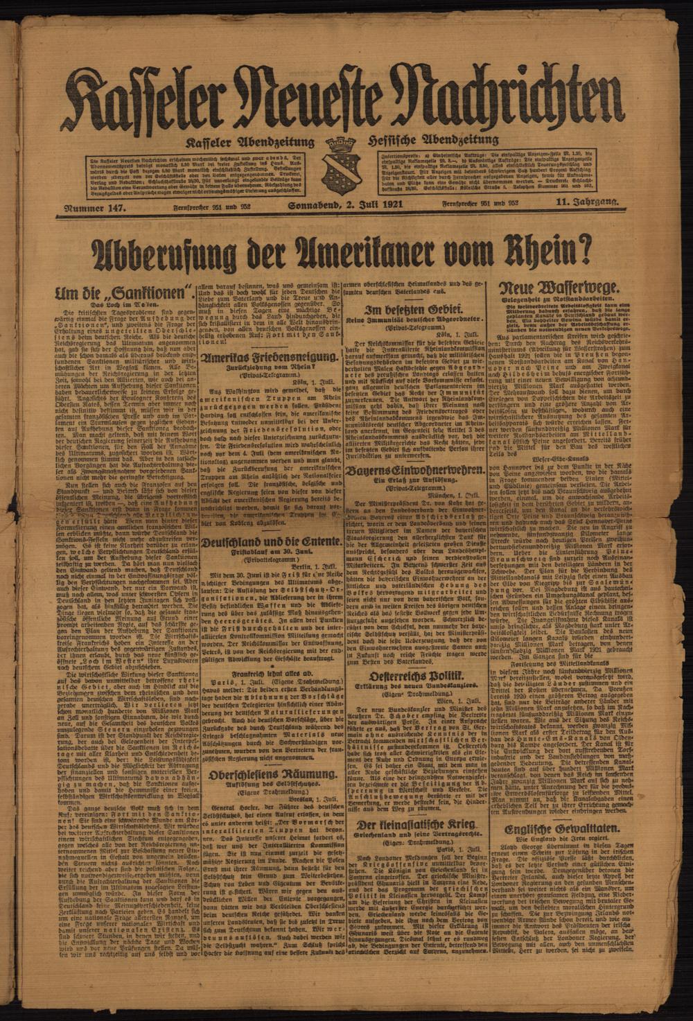 Casseler neueste Nachrichten. 1914-1918