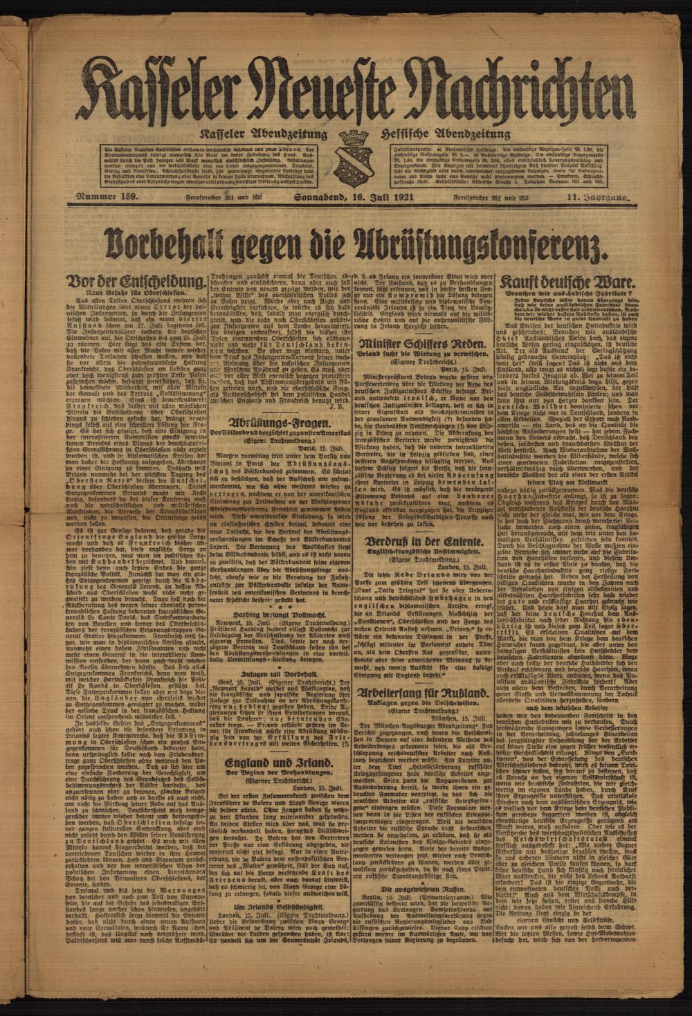 Casseler neueste Nachrichten. 1914-1918