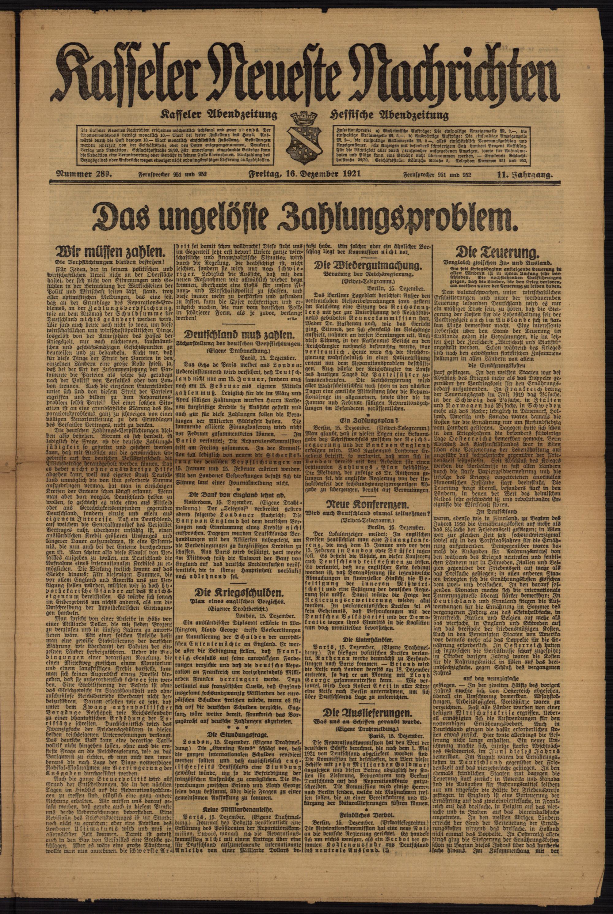 Casseler neueste Nachrichten. 1914-1918