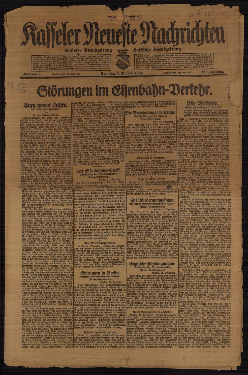 Zeitung Casseler neueste Nachrichten. 1914-1918