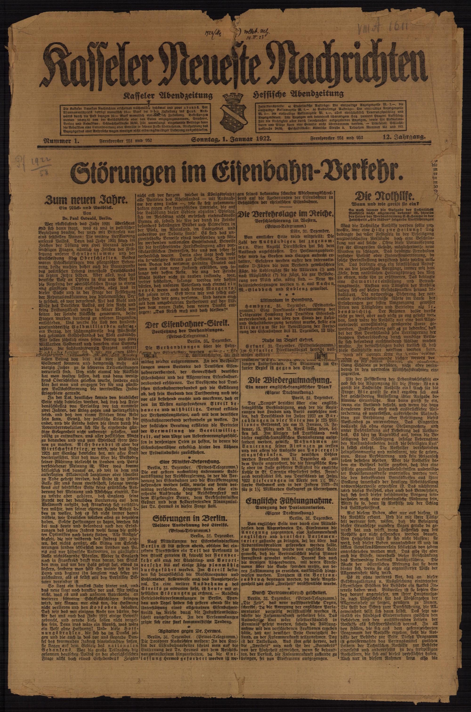 Casseler neueste Nachrichten. 1914-1918