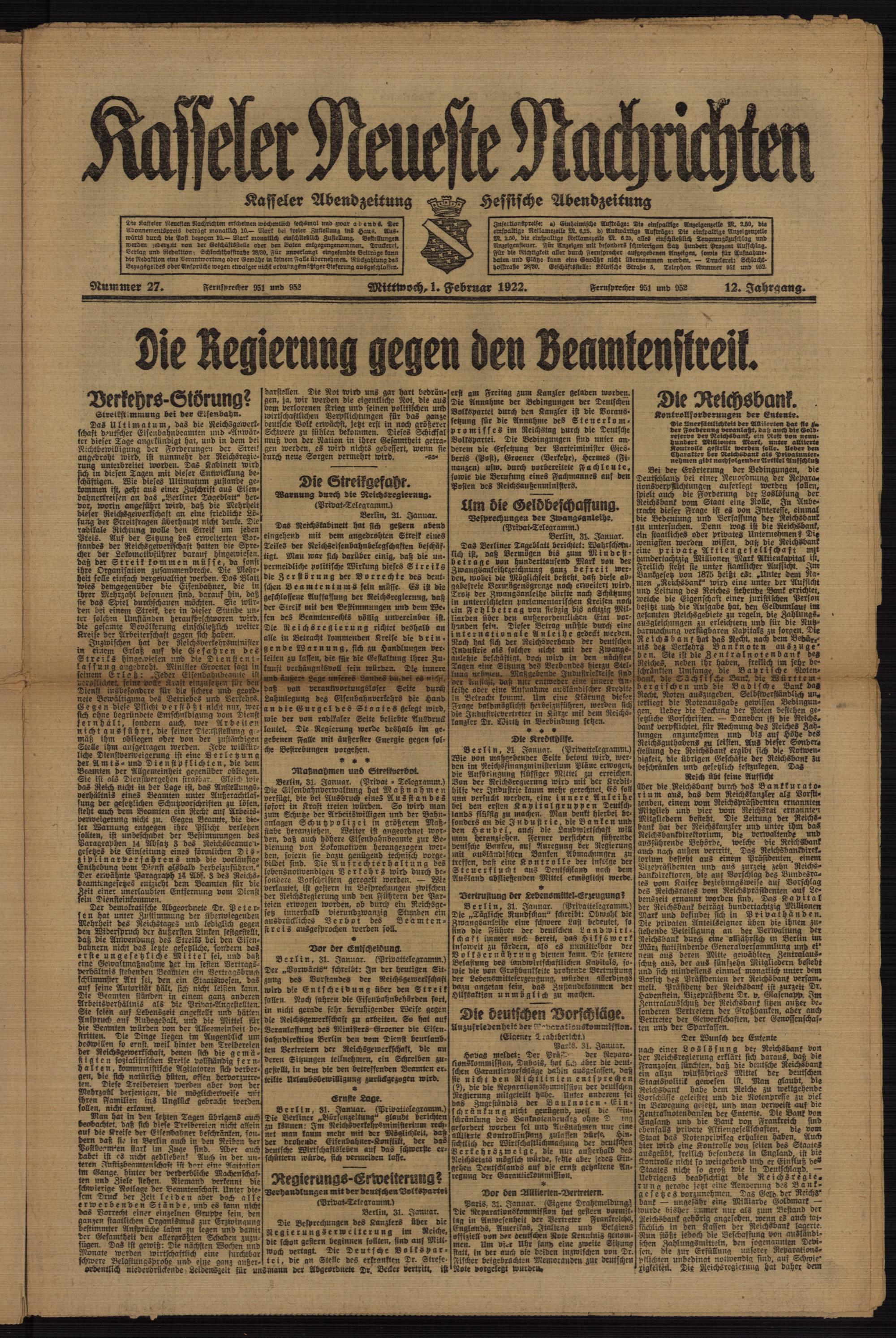 Casseler neueste Nachrichten. 1914-1918