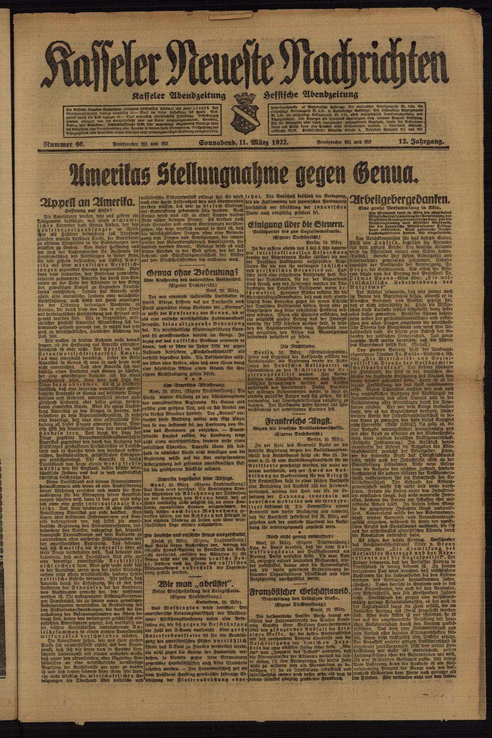 Casseler neueste Nachrichten. 1914-1918