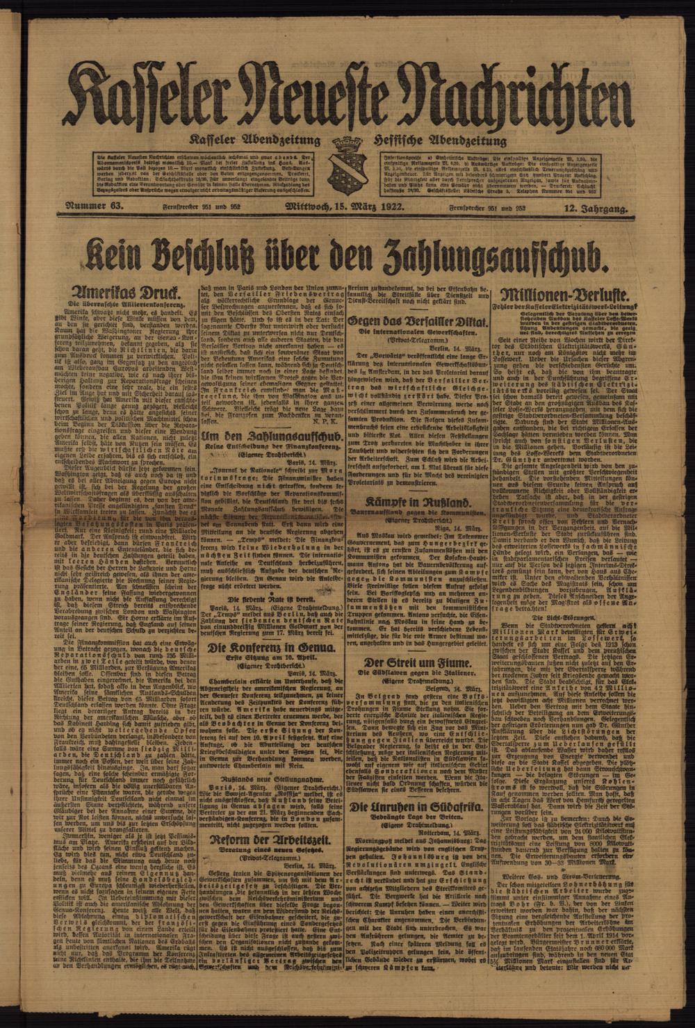 Casseler neueste Nachrichten. 1914-1918