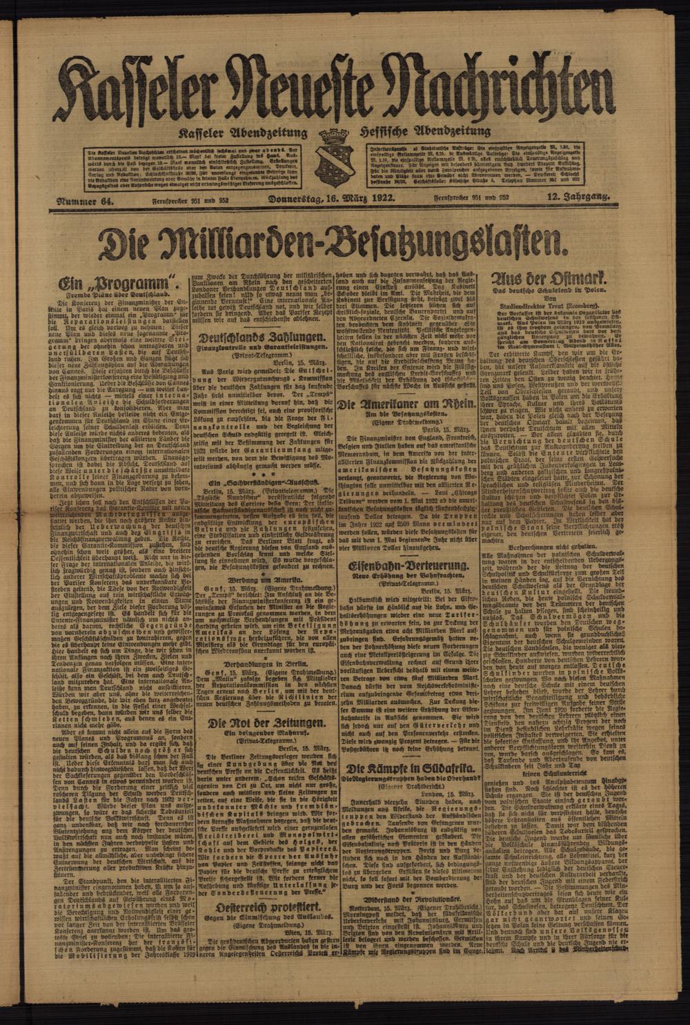 Casseler neueste Nachrichten. 1914-1918