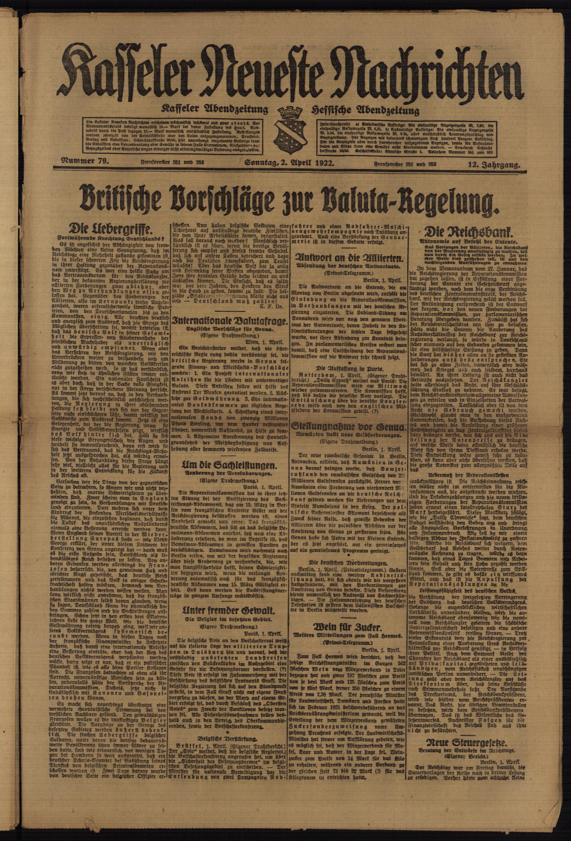 Casseler neueste Nachrichten. 1914-1918