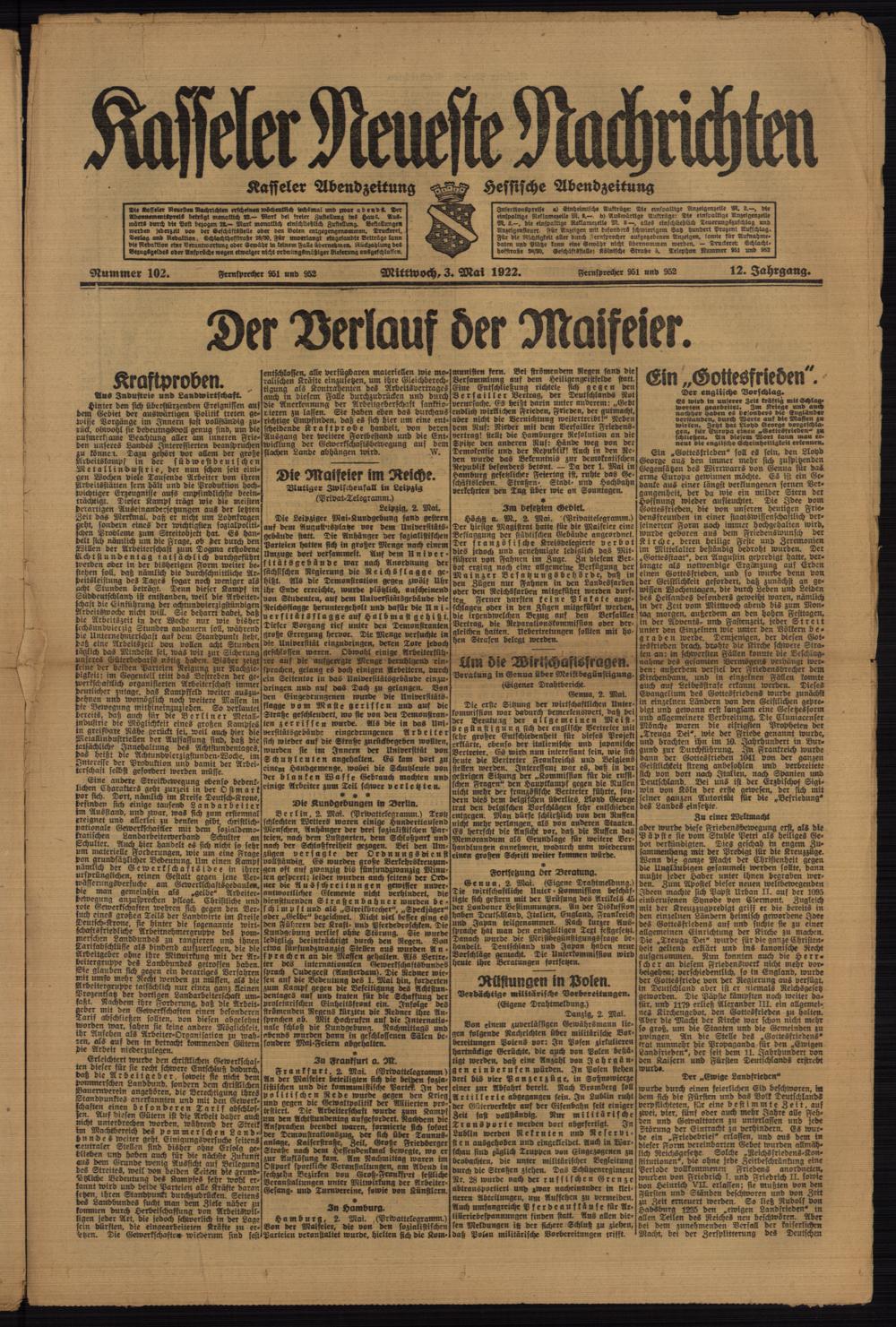 Casseler neueste Nachrichten. 1914-1918