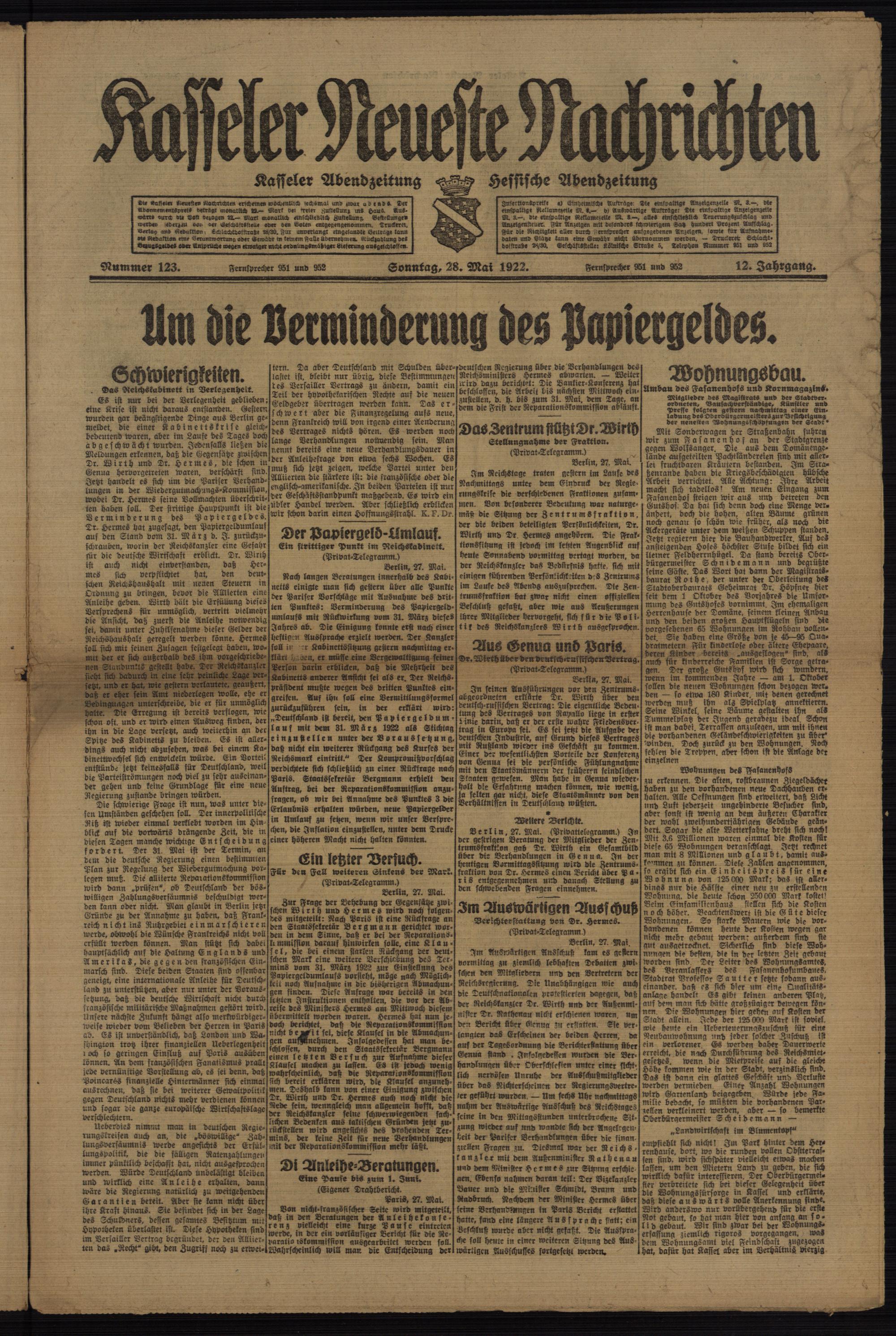 Casseler neueste Nachrichten. 1914-1918