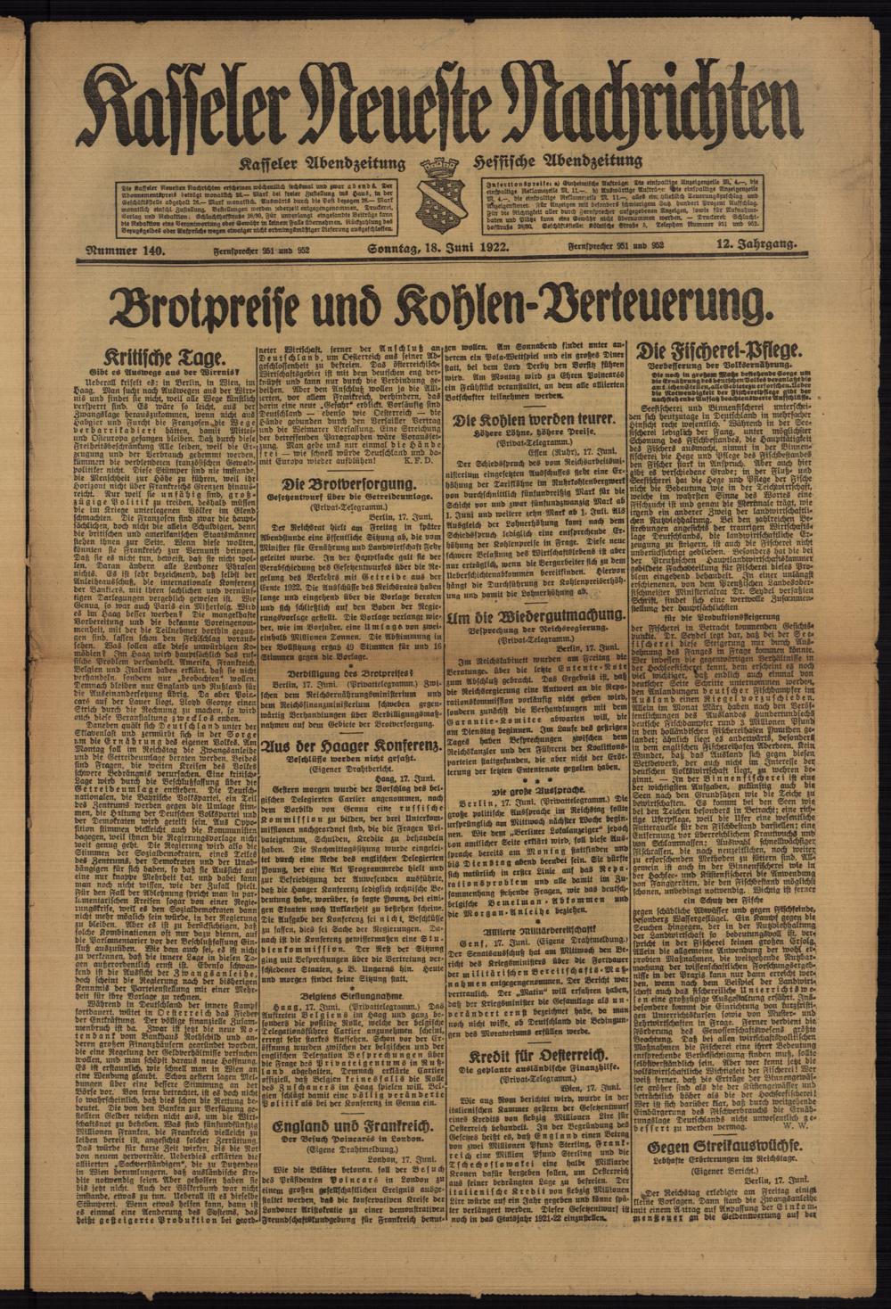 Casseler neueste Nachrichten. 1914-1918