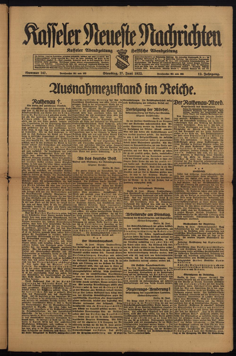 Casseler neueste Nachrichten. 1914-1918