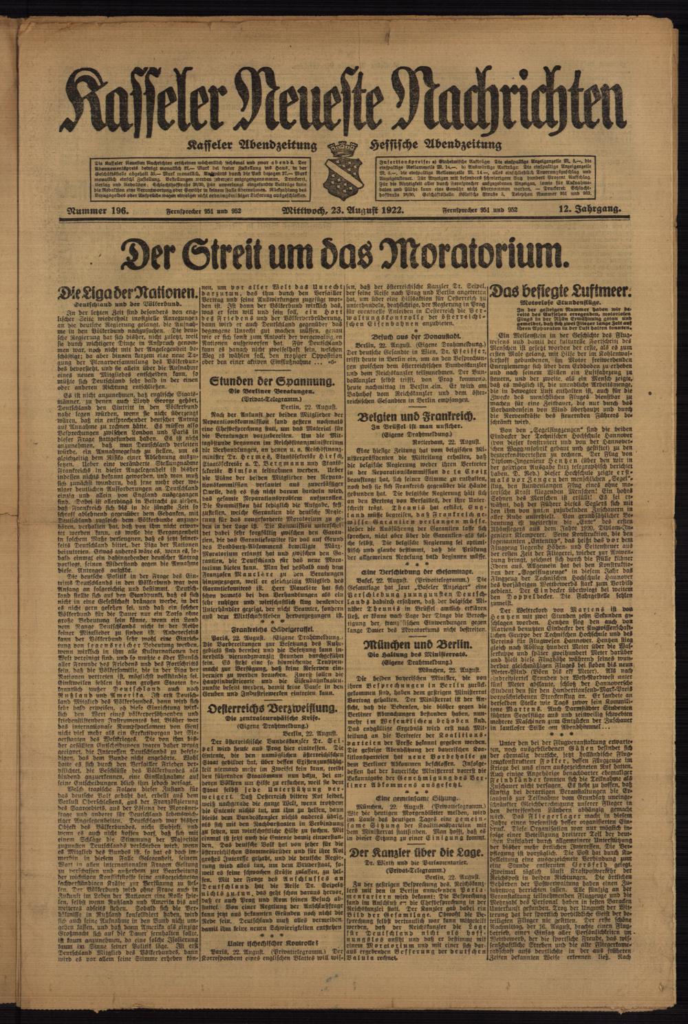 Casseler neueste Nachrichten. 1914-1918
