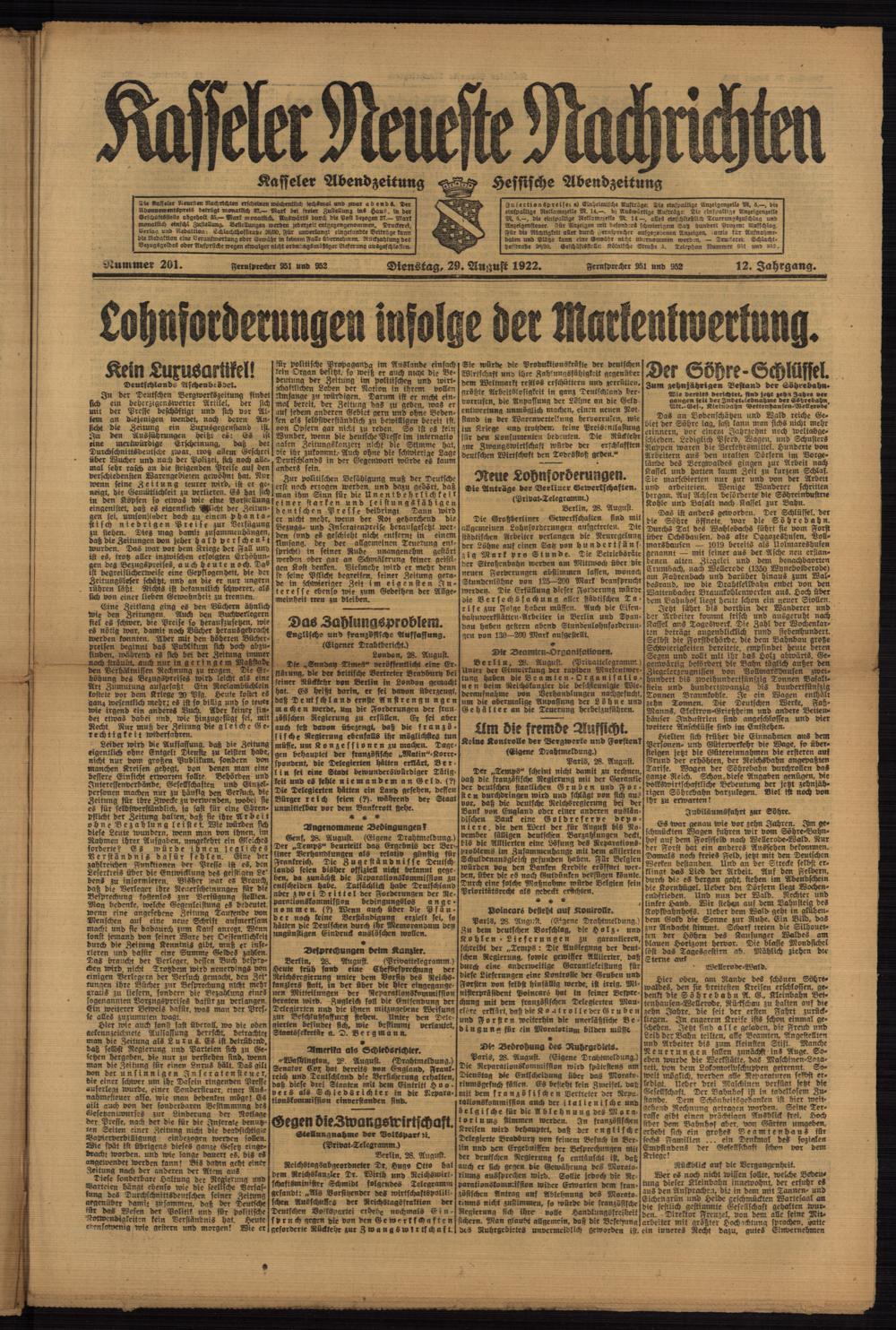Casseler neueste Nachrichten. 1914-1918