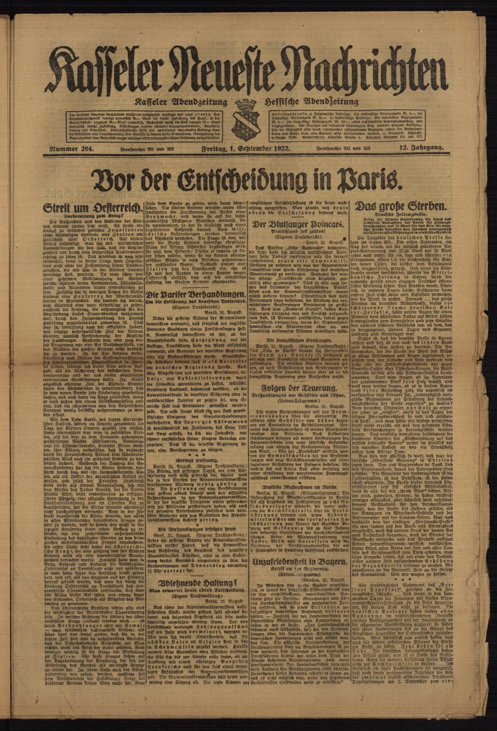 Casseler neueste Nachrichten. 1914-1918