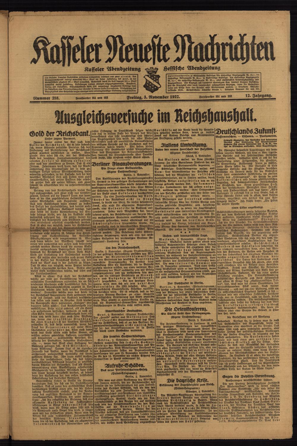 Casseler neueste Nachrichten. 1914-1918