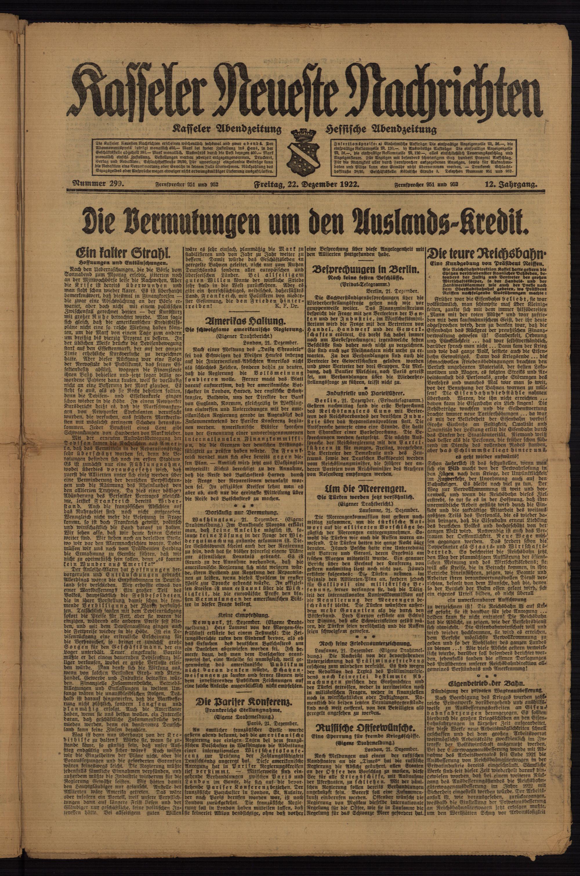 Casseler neueste Nachrichten. 1914-1918