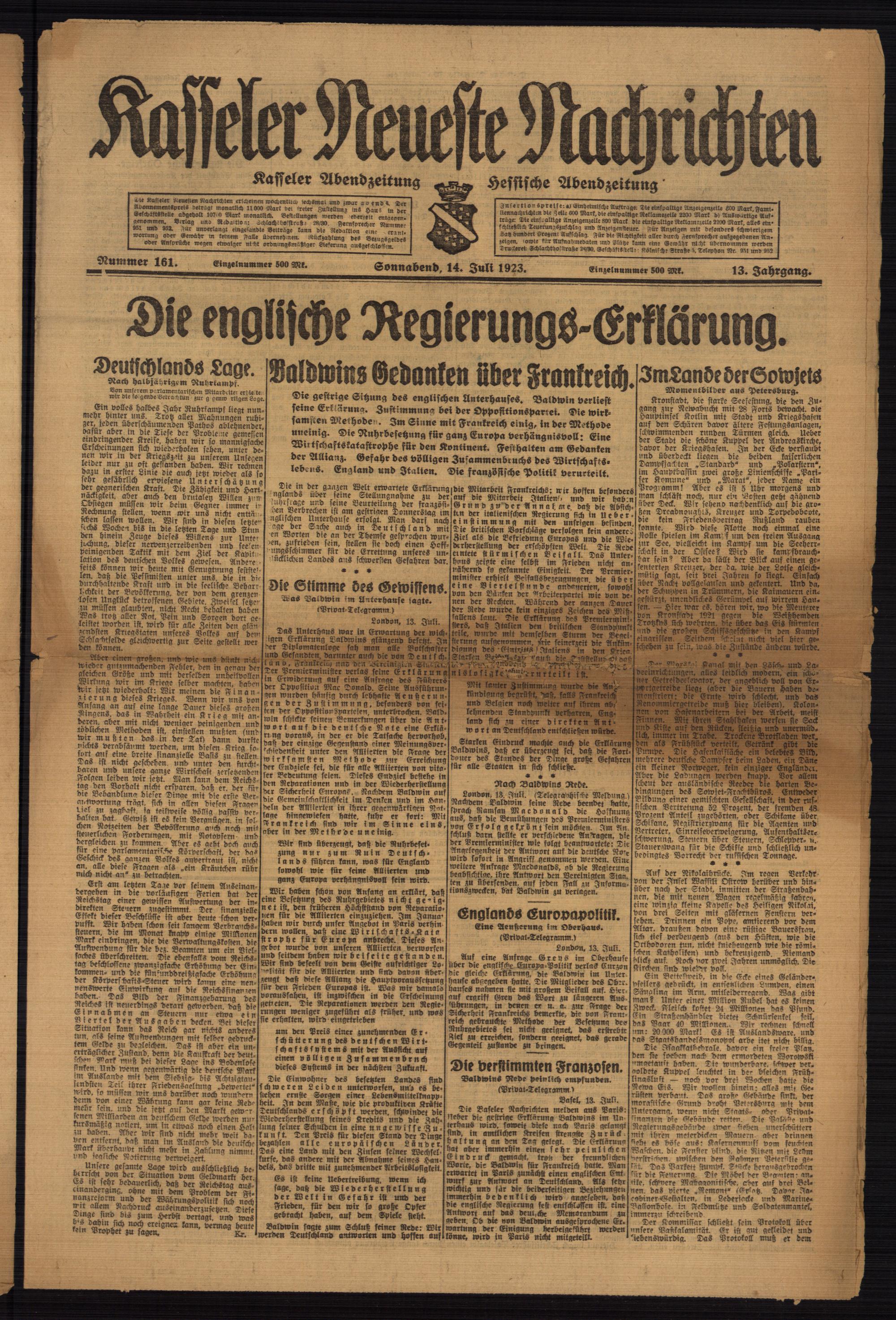 Casseler neueste Nachrichten. 1914-1918