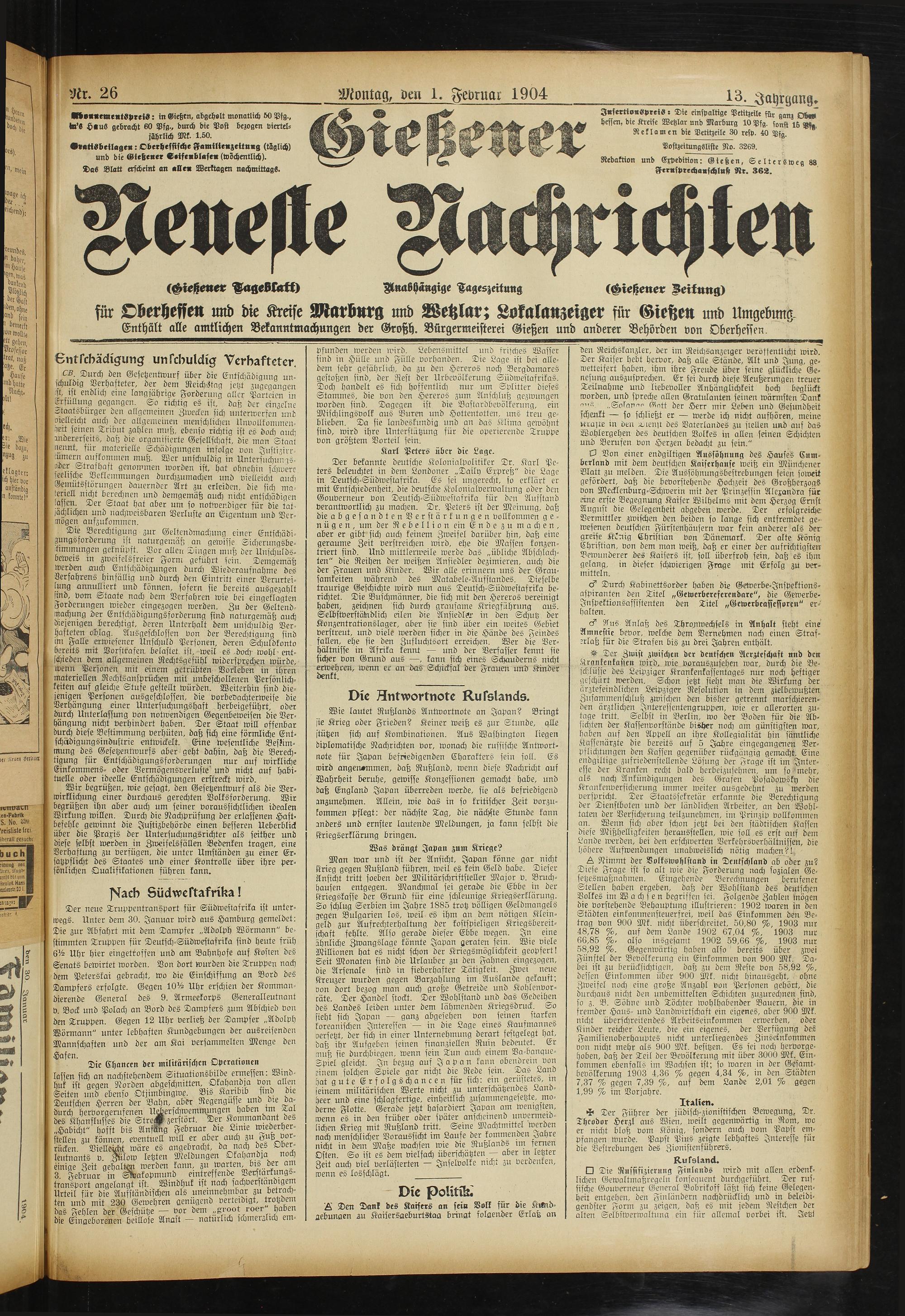 Gießener Zeitung. 1914-1918
