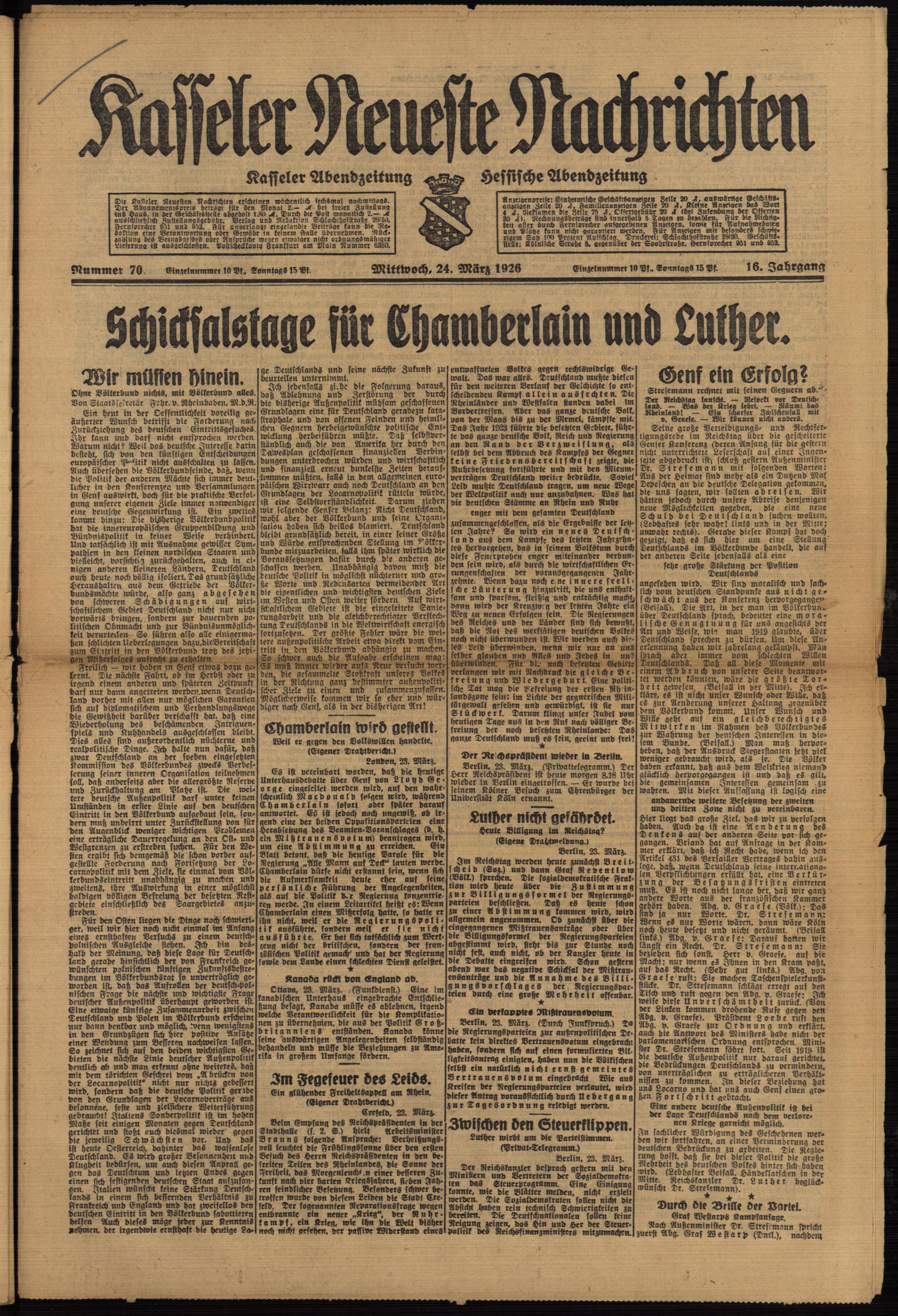 Casseler neueste Nachrichten. 1914-1918