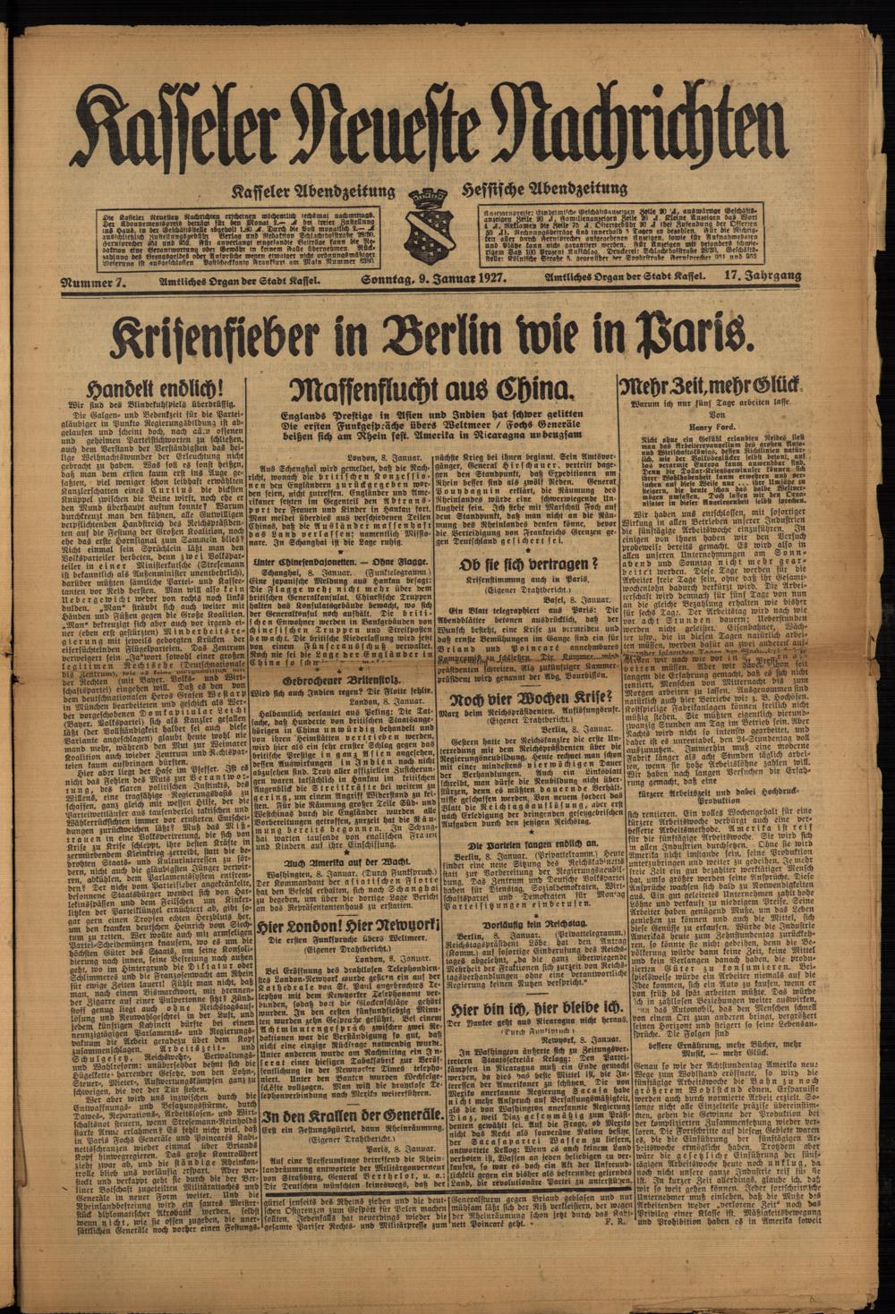 Casseler neueste Nachrichten. 1914-1918
