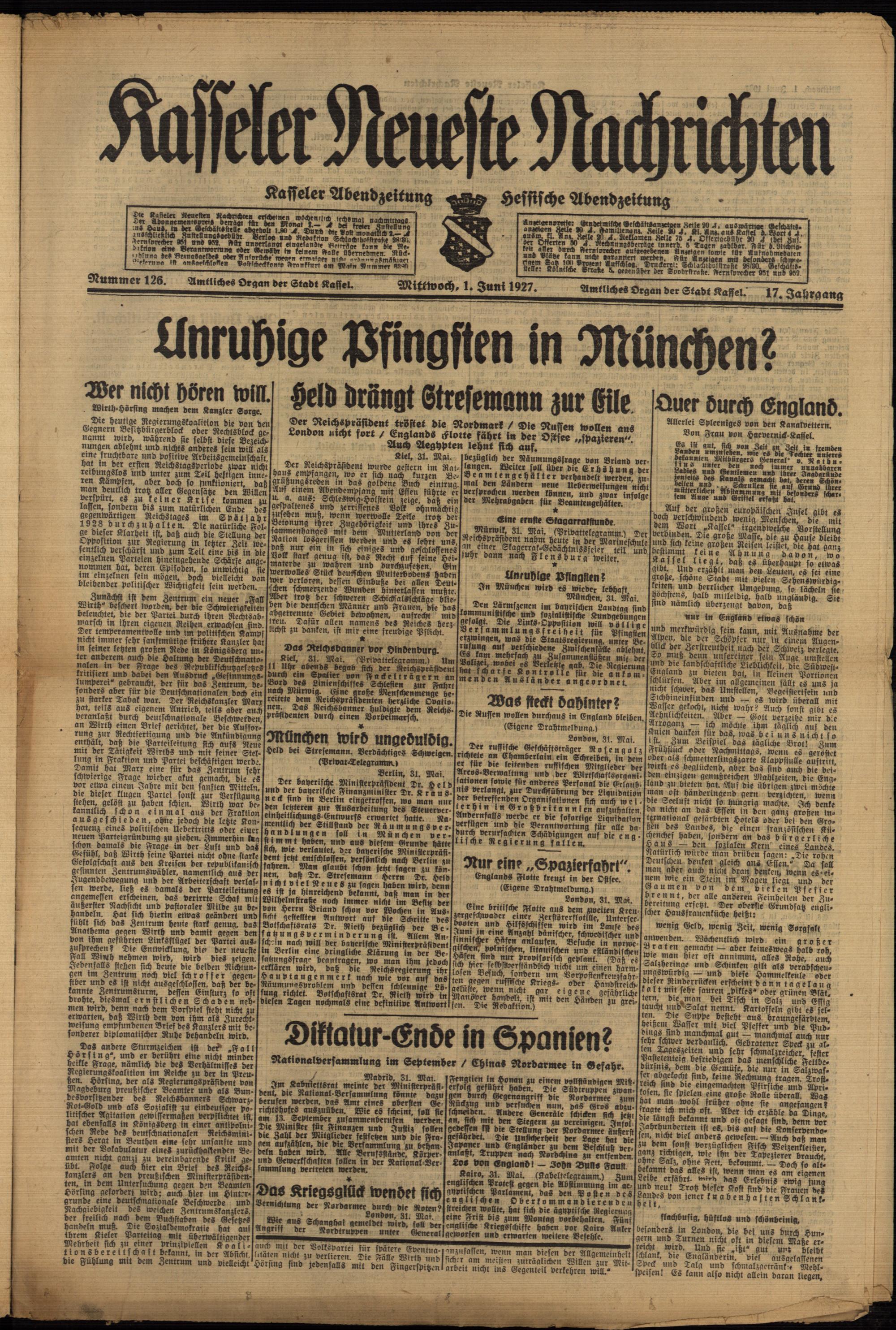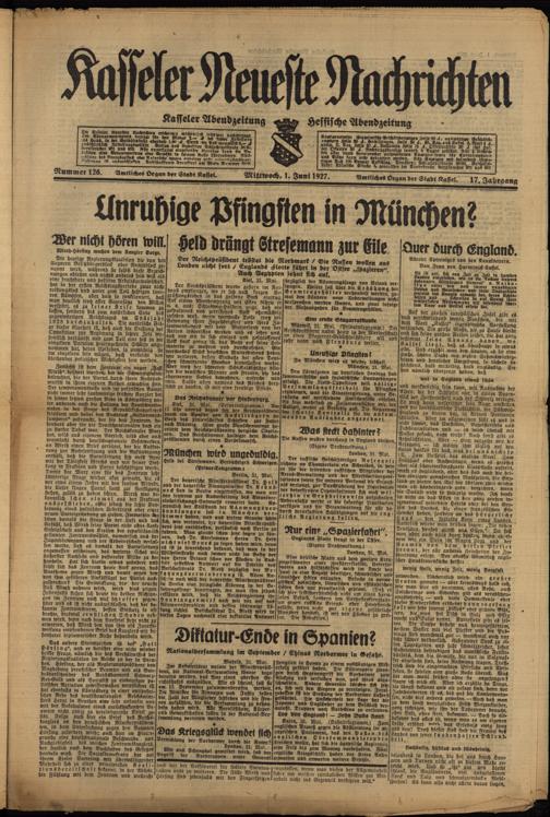 Casseler neueste Nachrichten. 1914-1918