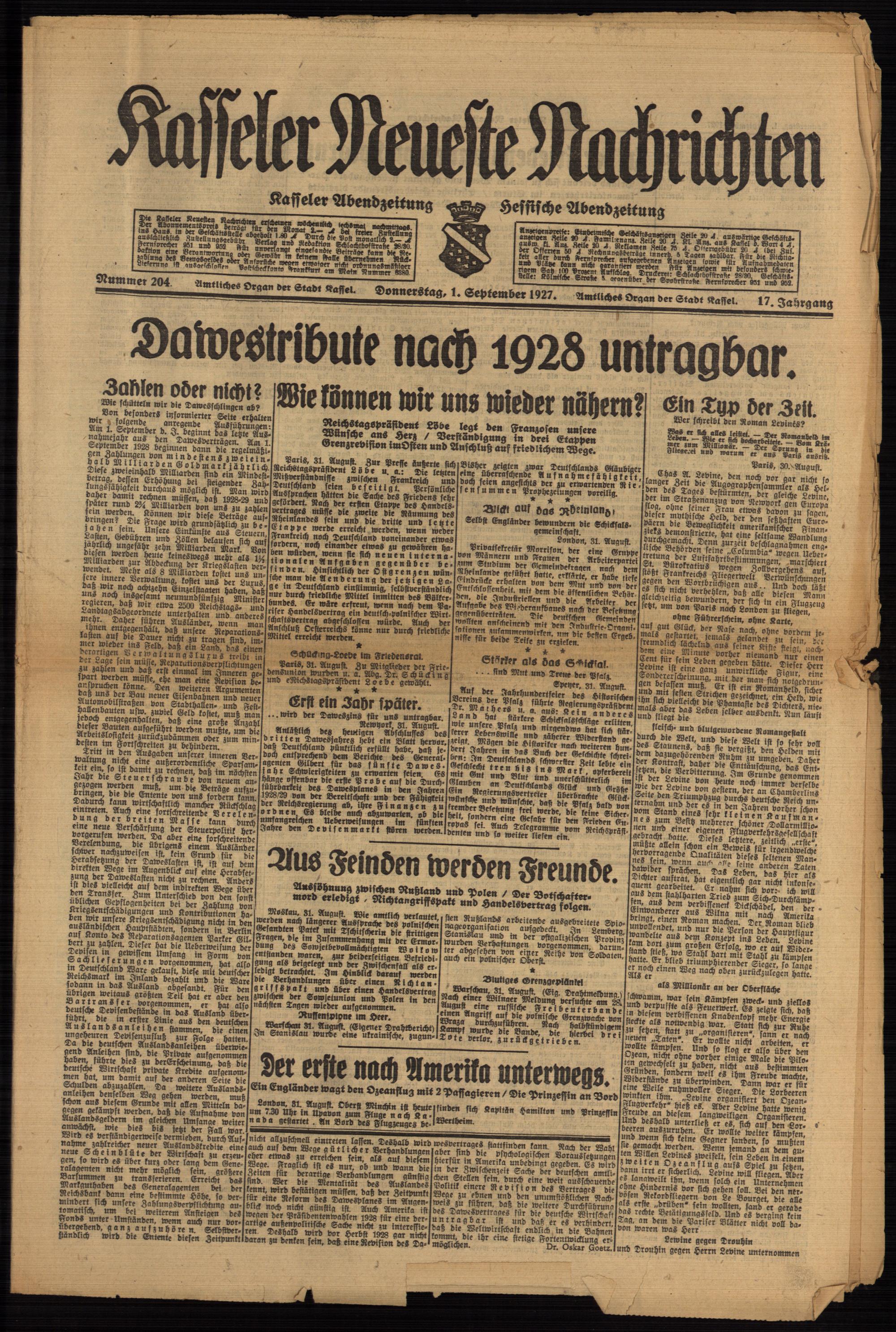 Casseler neueste Nachrichten. 1914-1918