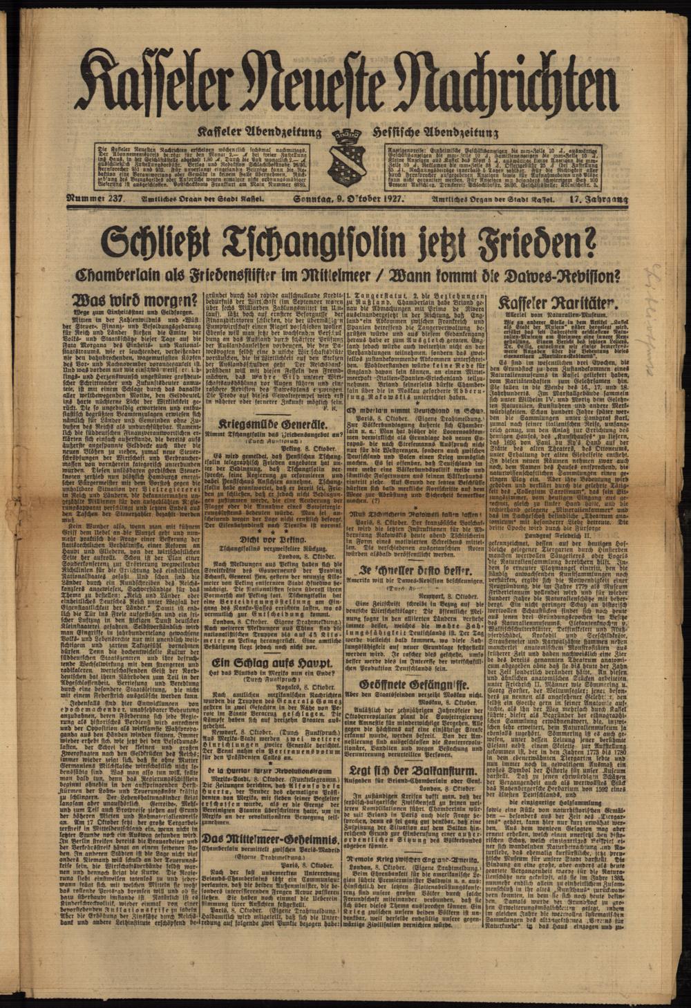 Casseler neueste Nachrichten. 1914-1918
