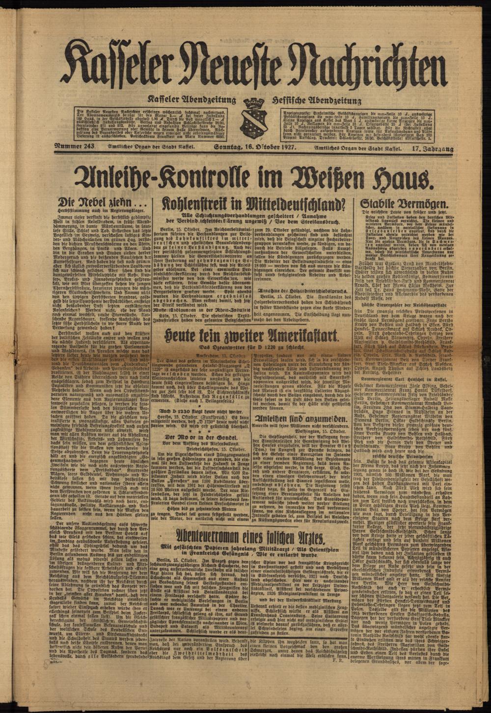 Casseler neueste Nachrichten. 1914-1918