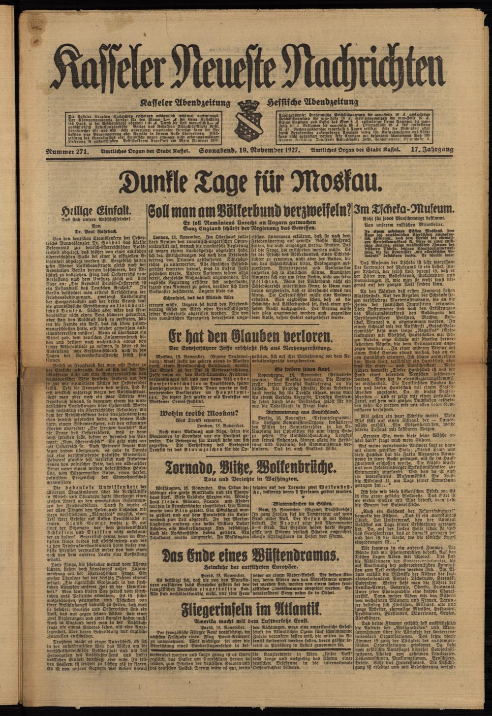 Casseler neueste Nachrichten. 1914-1918