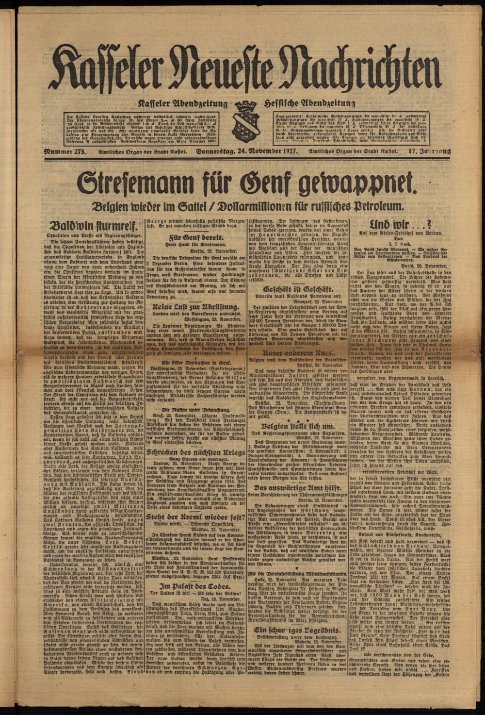 Casseler neueste Nachrichten. 1914-1918