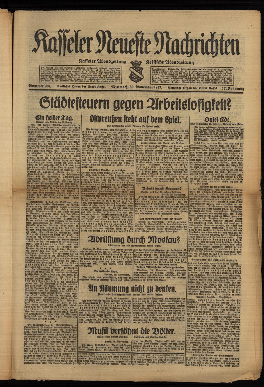 Casseler neueste Nachrichten. 1914-1918