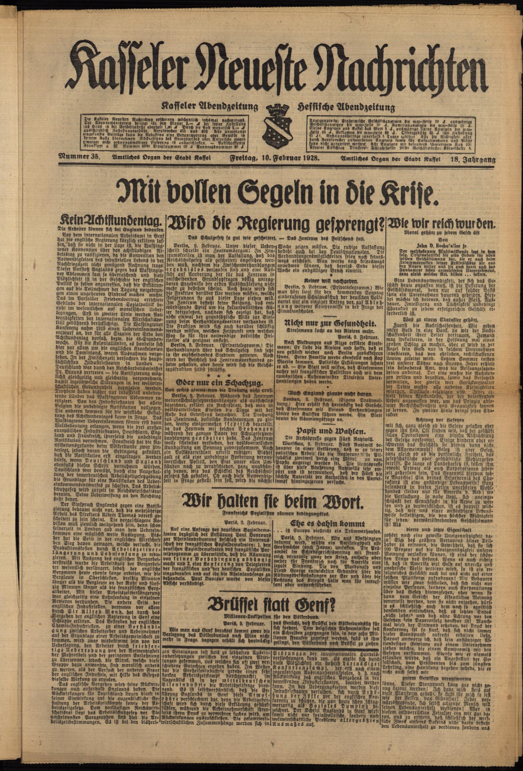 Casseler neueste Nachrichten. 1914-1918