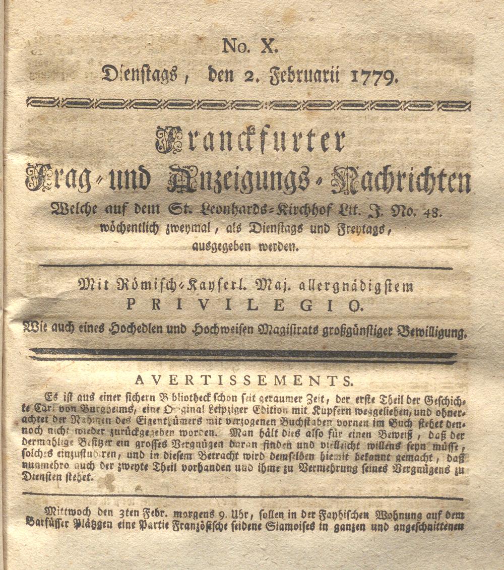 Franckfurter Frag- und Anzeige-Nachricht...