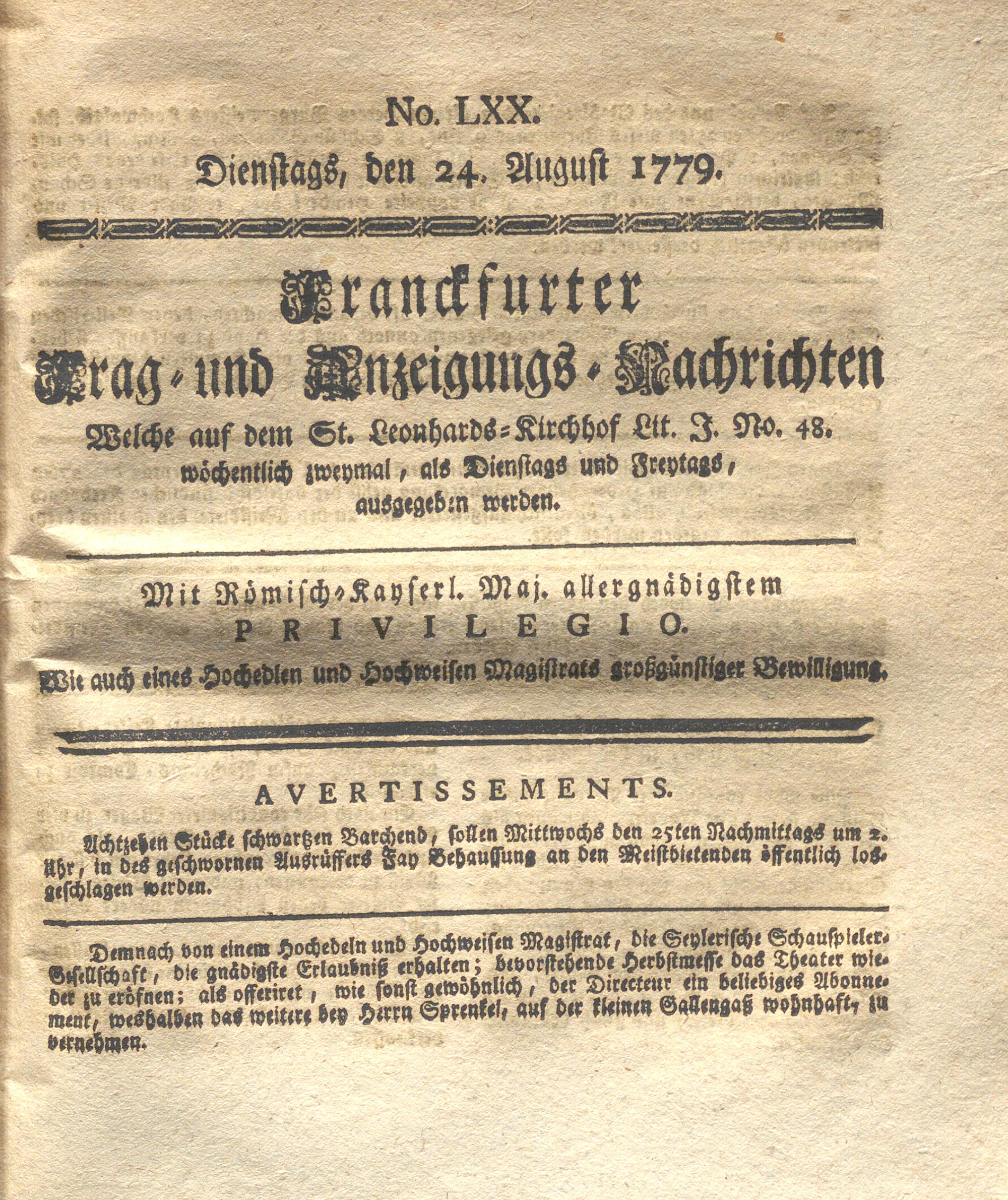 Franckfurter Frag- und Anzeige-Nachricht...