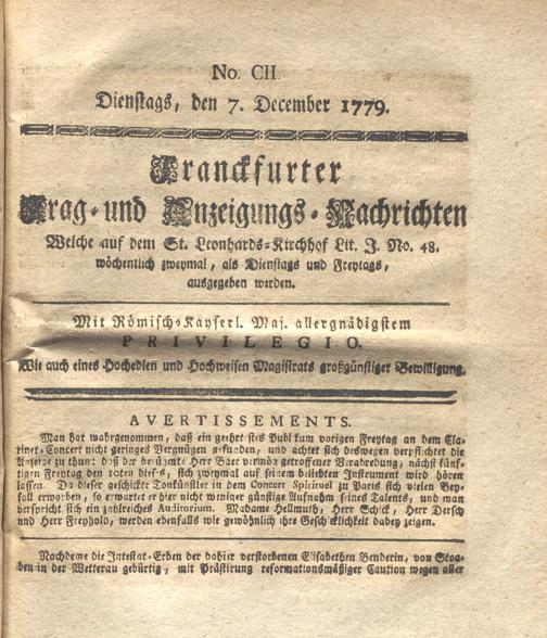 Franckfurter Frag- und Anzeige-Nachricht...